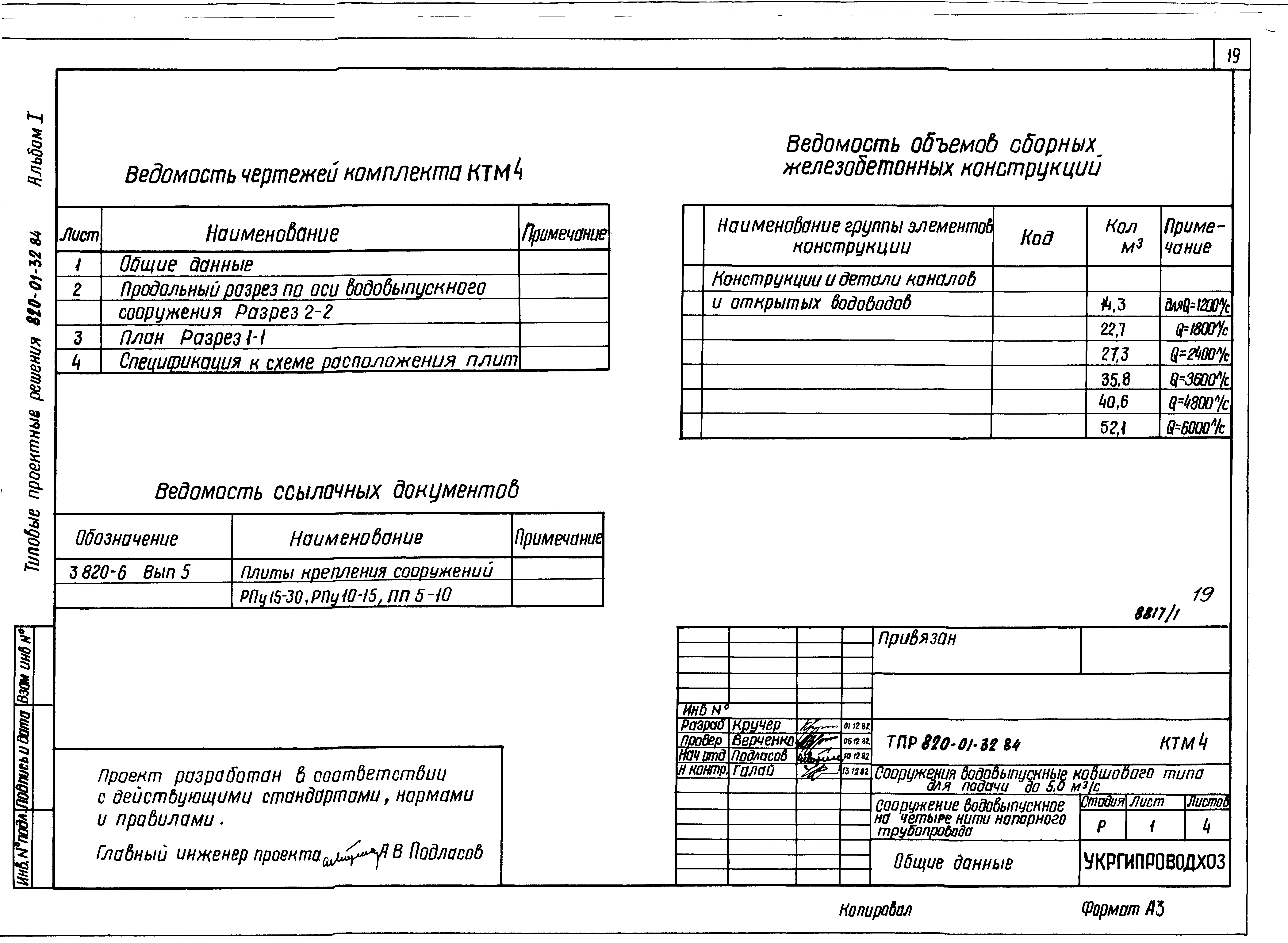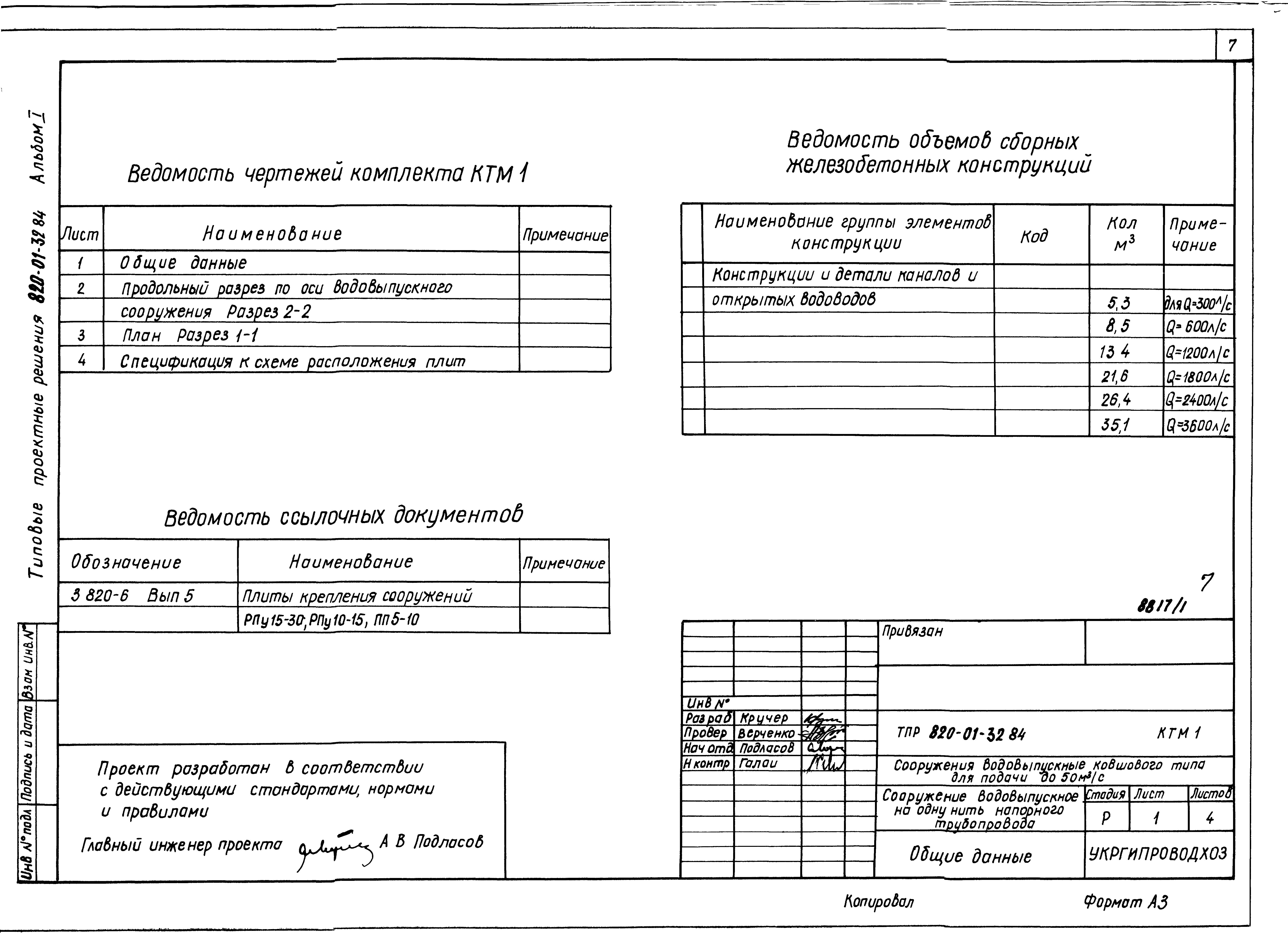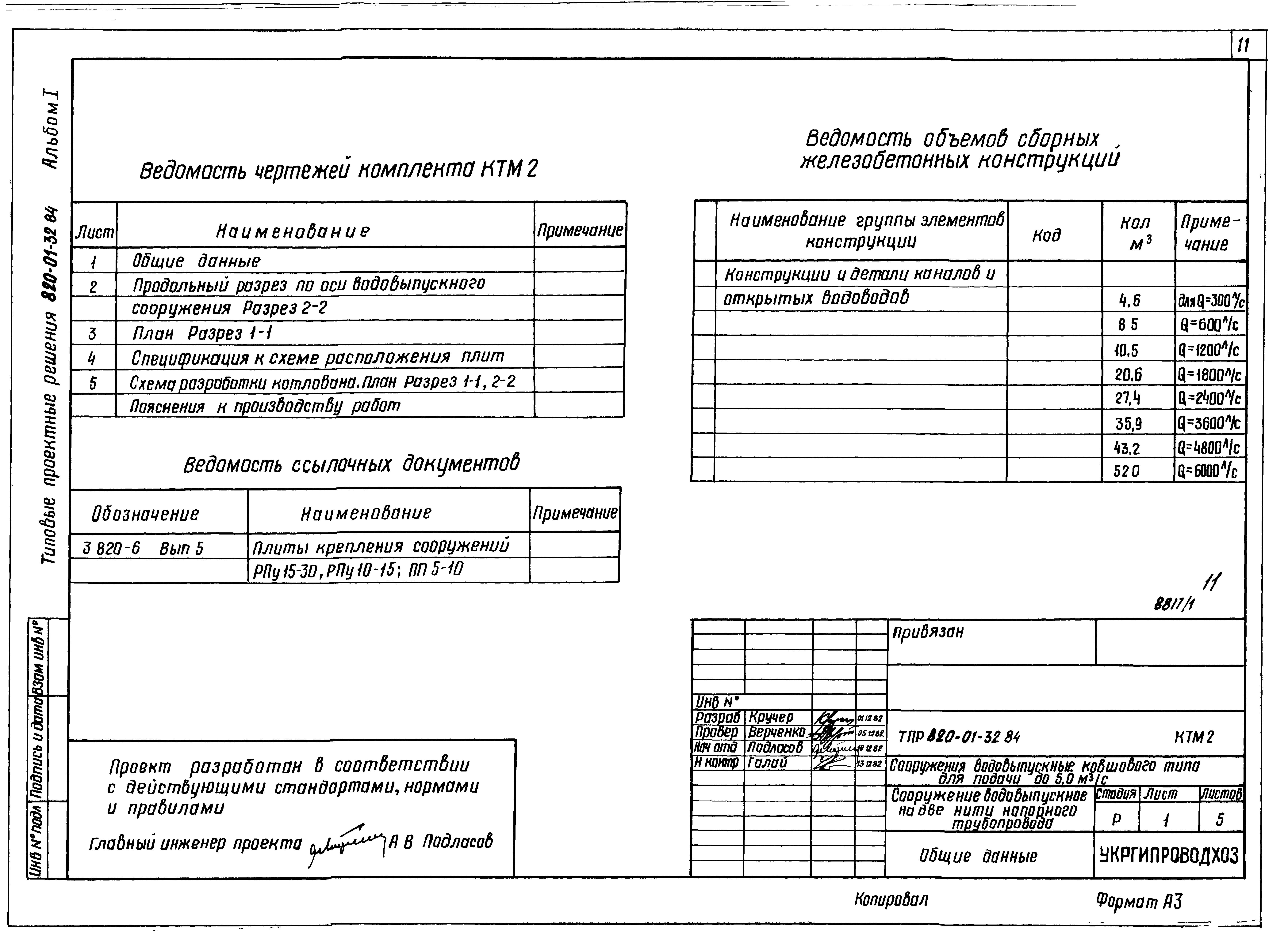 Типовой проект 820-01-32.84 Сооружения водовыпускные ковшового типа для подачи до 5,0 м.куб/с