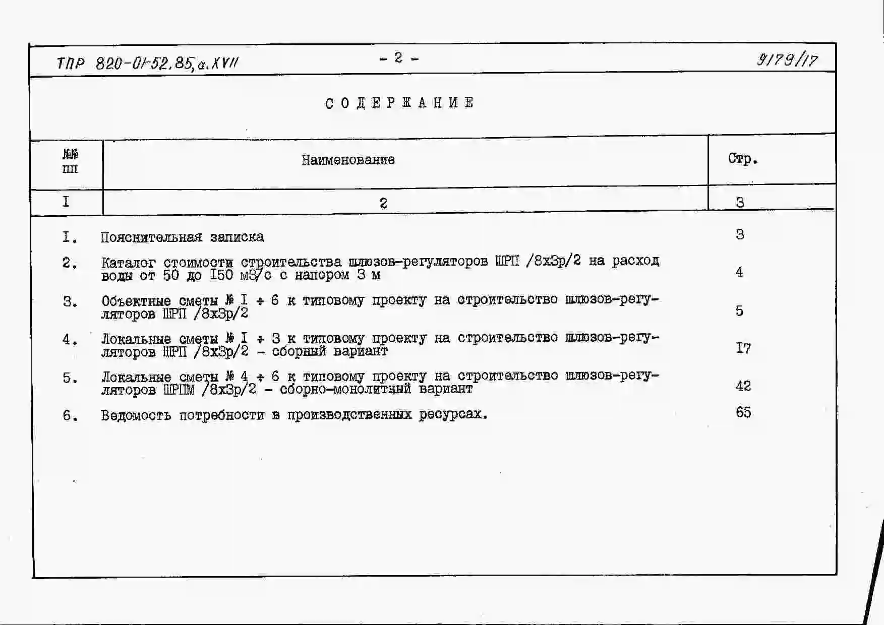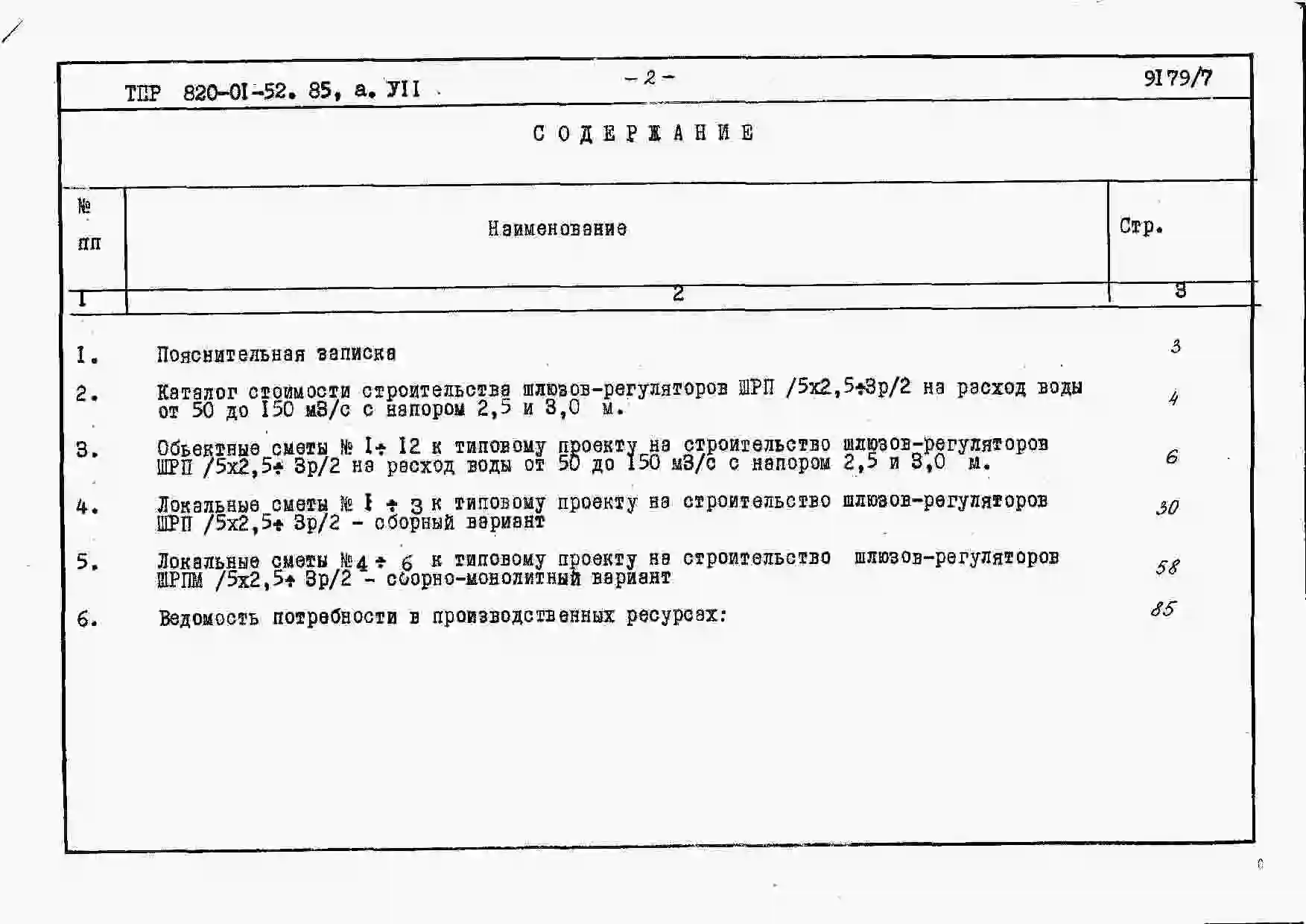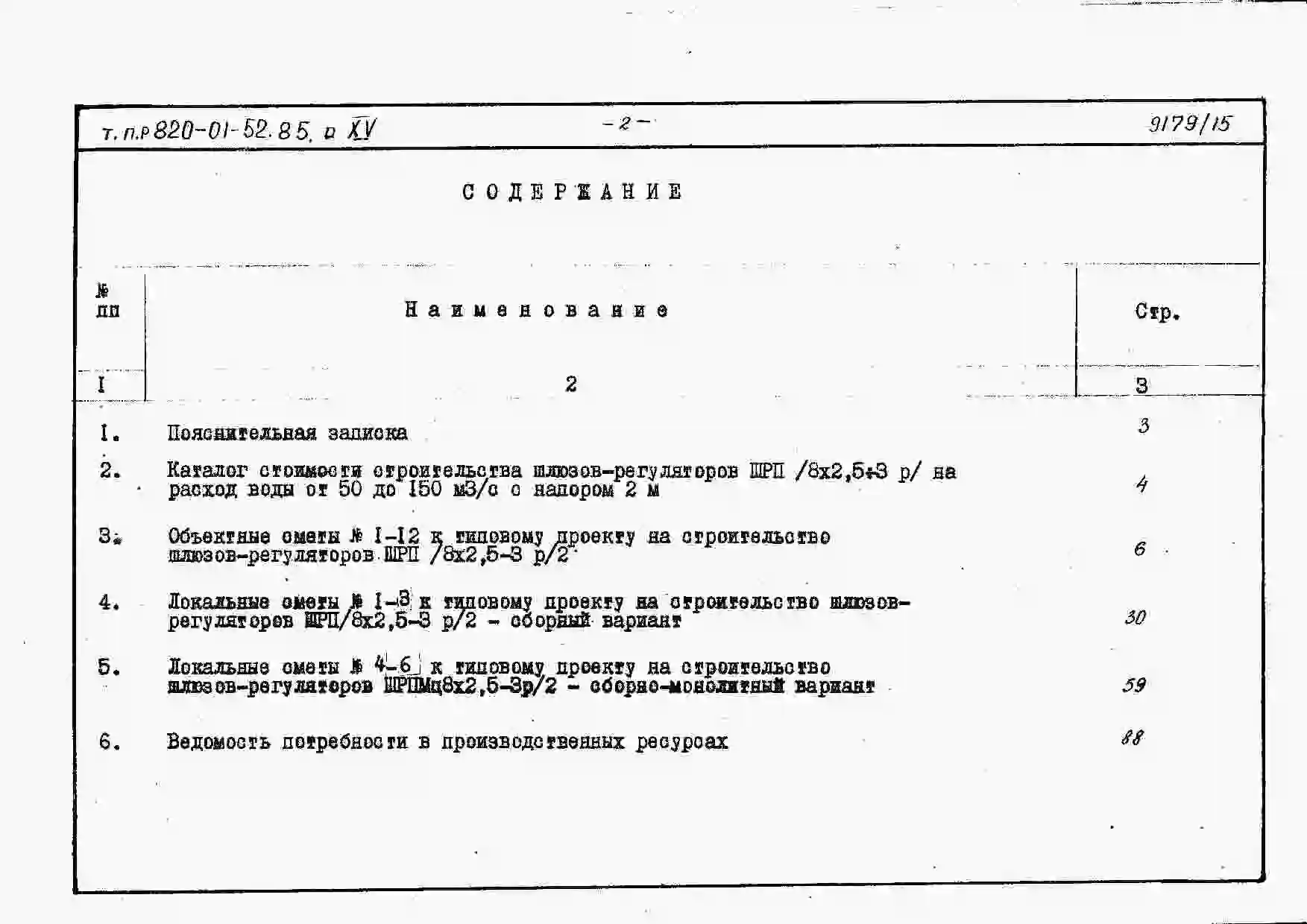 Типовой проект 820-01-52.85 Шлюзы-регуляторы на расход воды от 50 до 150 м.куб/с с напором 2,0; 2,5 и 3,0 м при колебании уровней в верхнем бъефе свыше 2,0 м