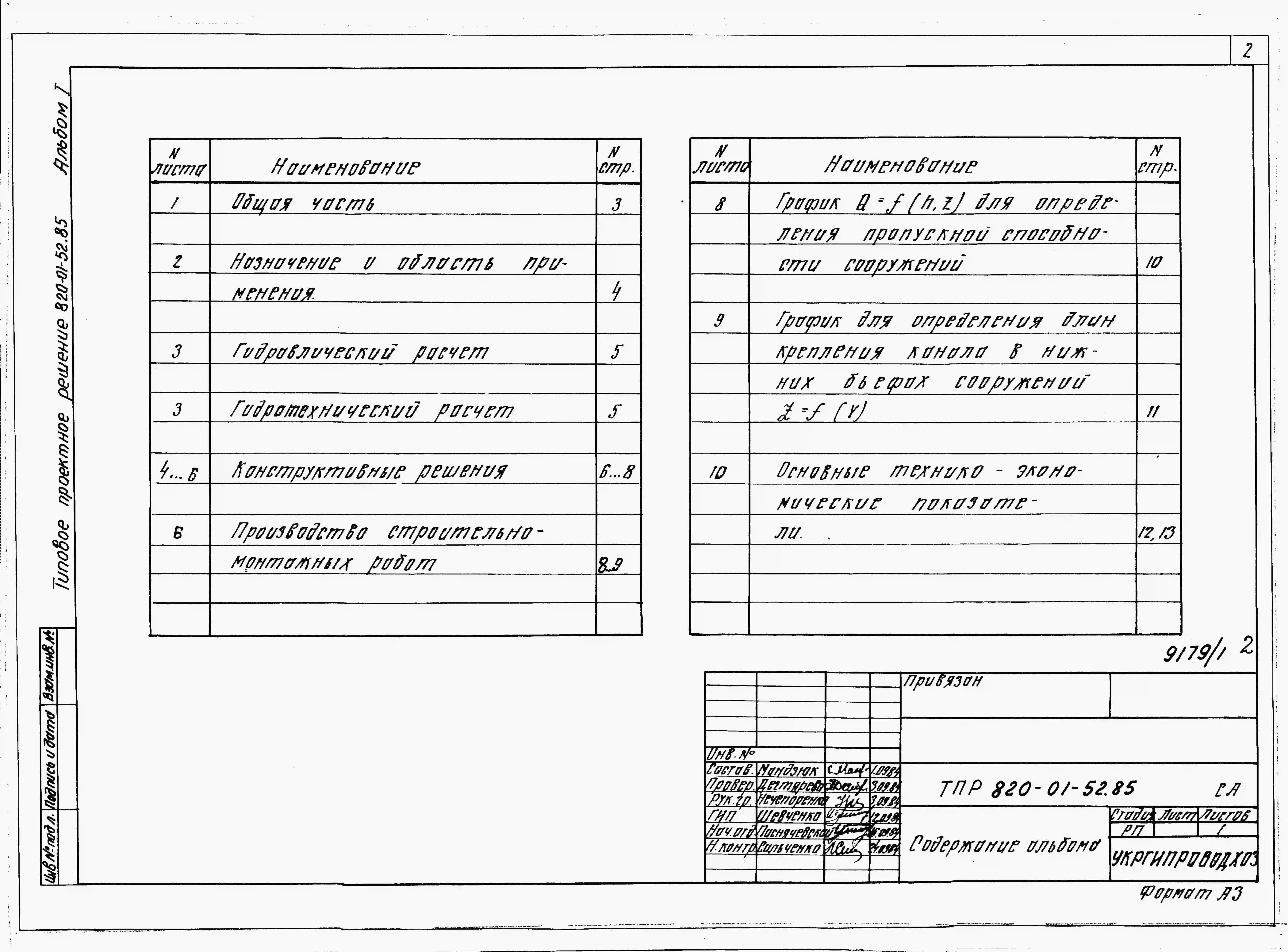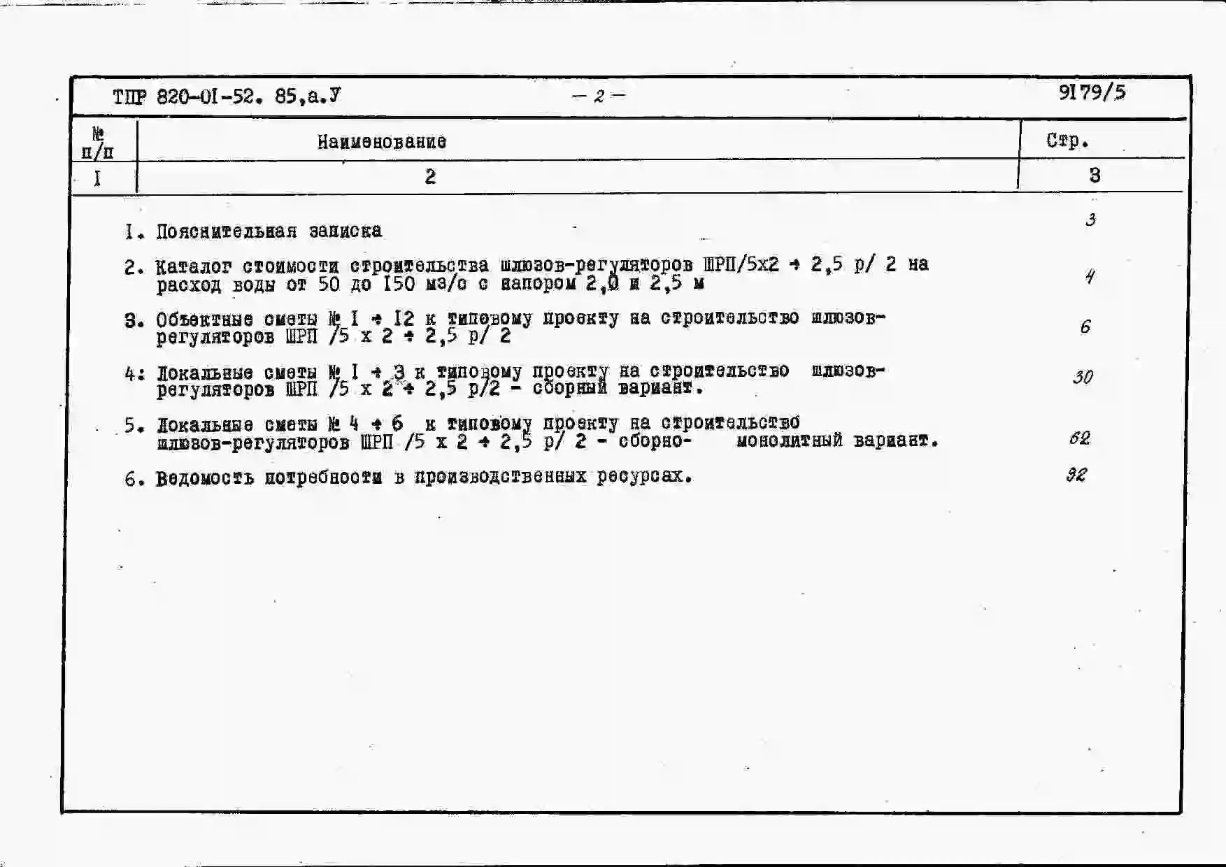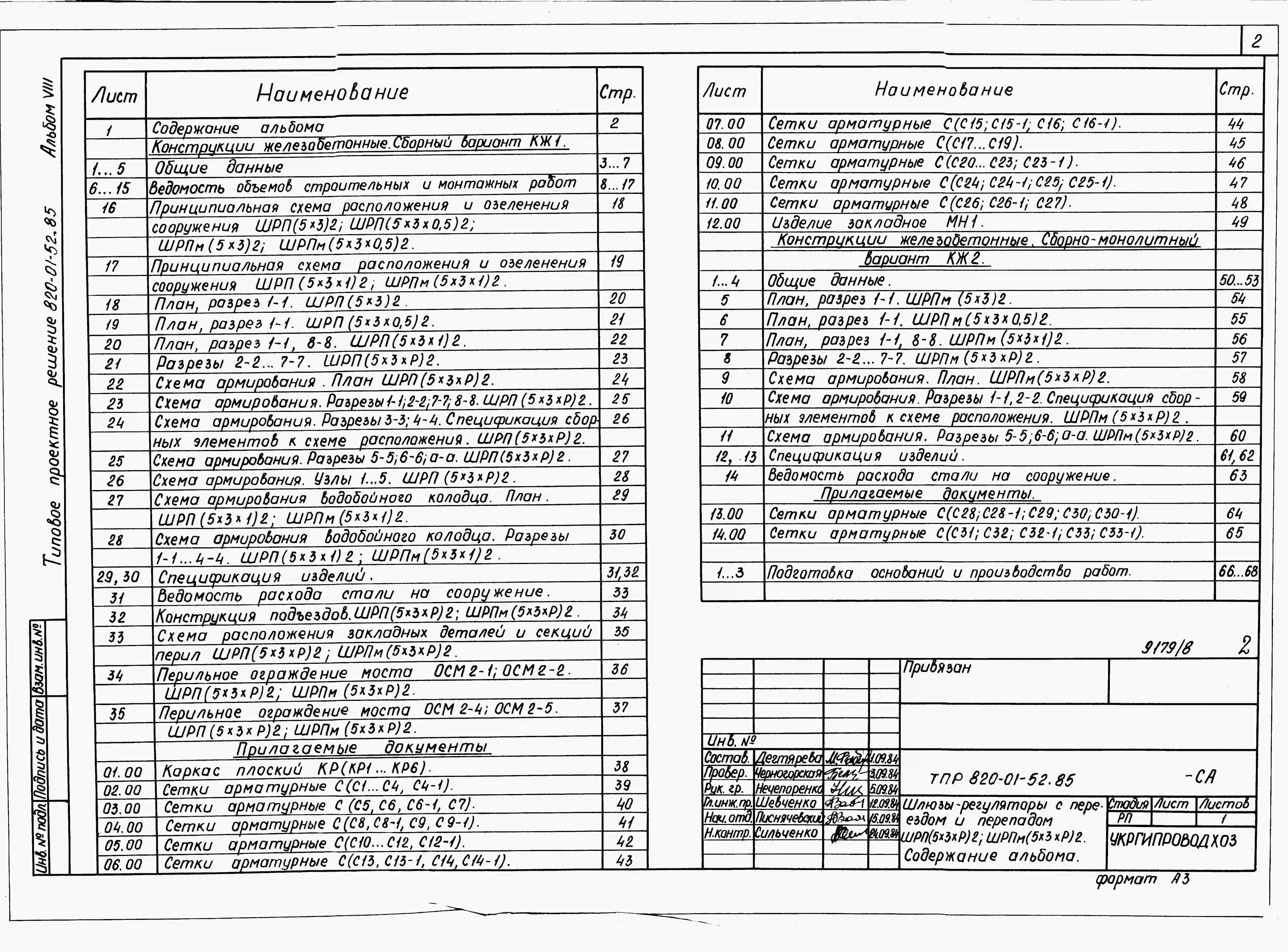 Типовой проект 820-01-52.85 Шлюзы-регуляторы на расход воды от 50 до 150 м.куб/с с напором 2,0; 2,5 и 3,0 м при колебании уровней в верхнем бъефе свыше 2,0 м