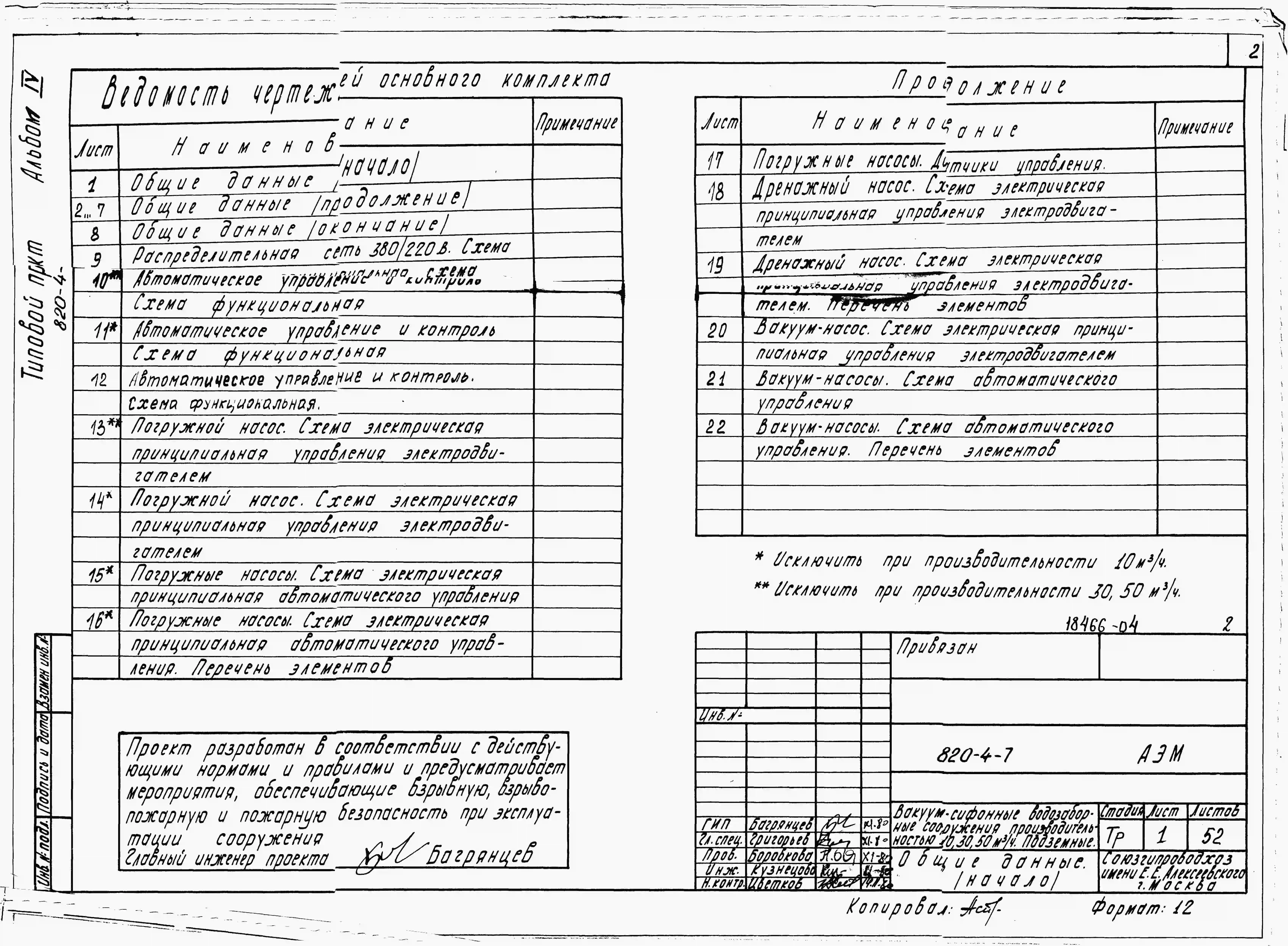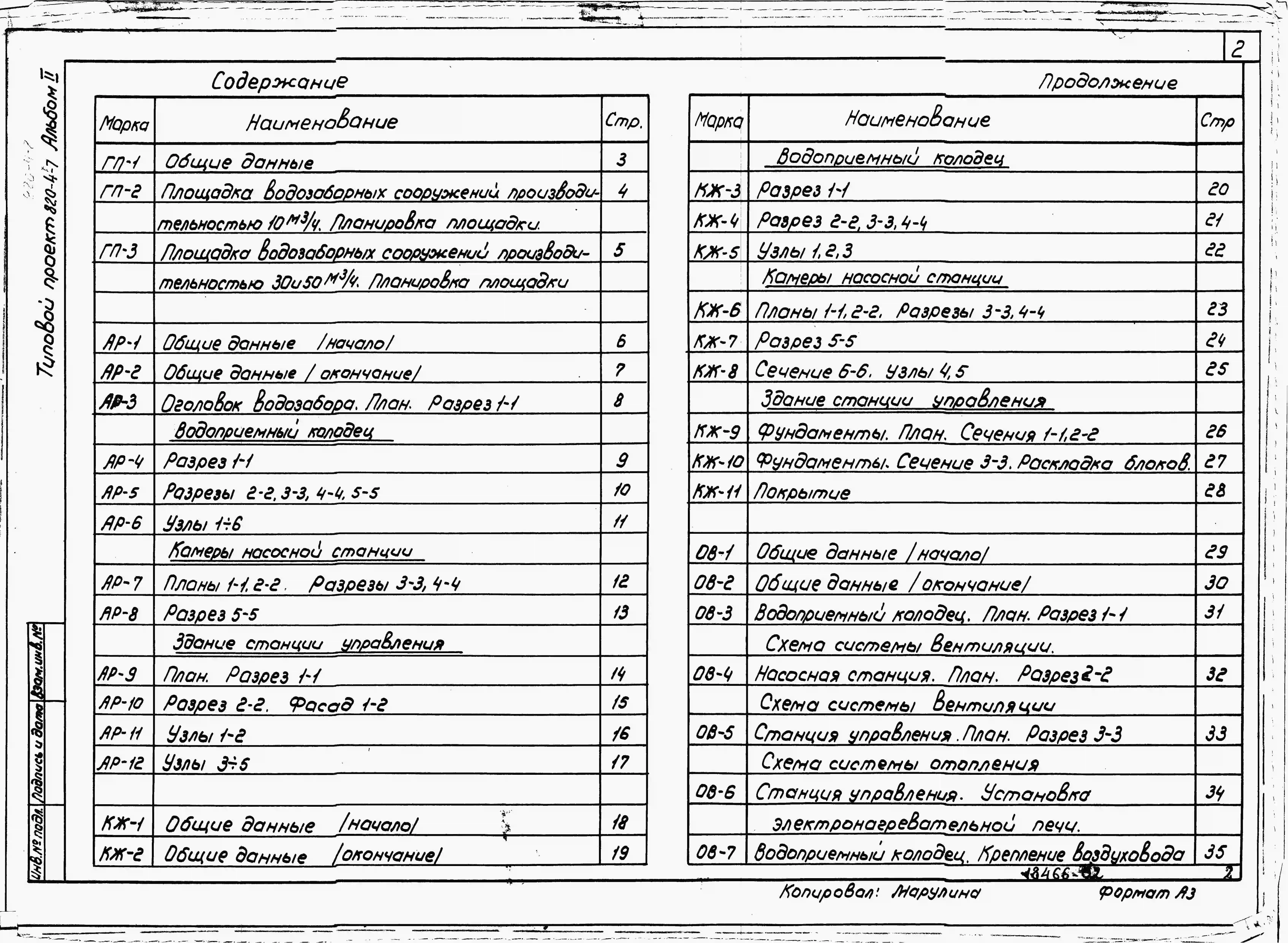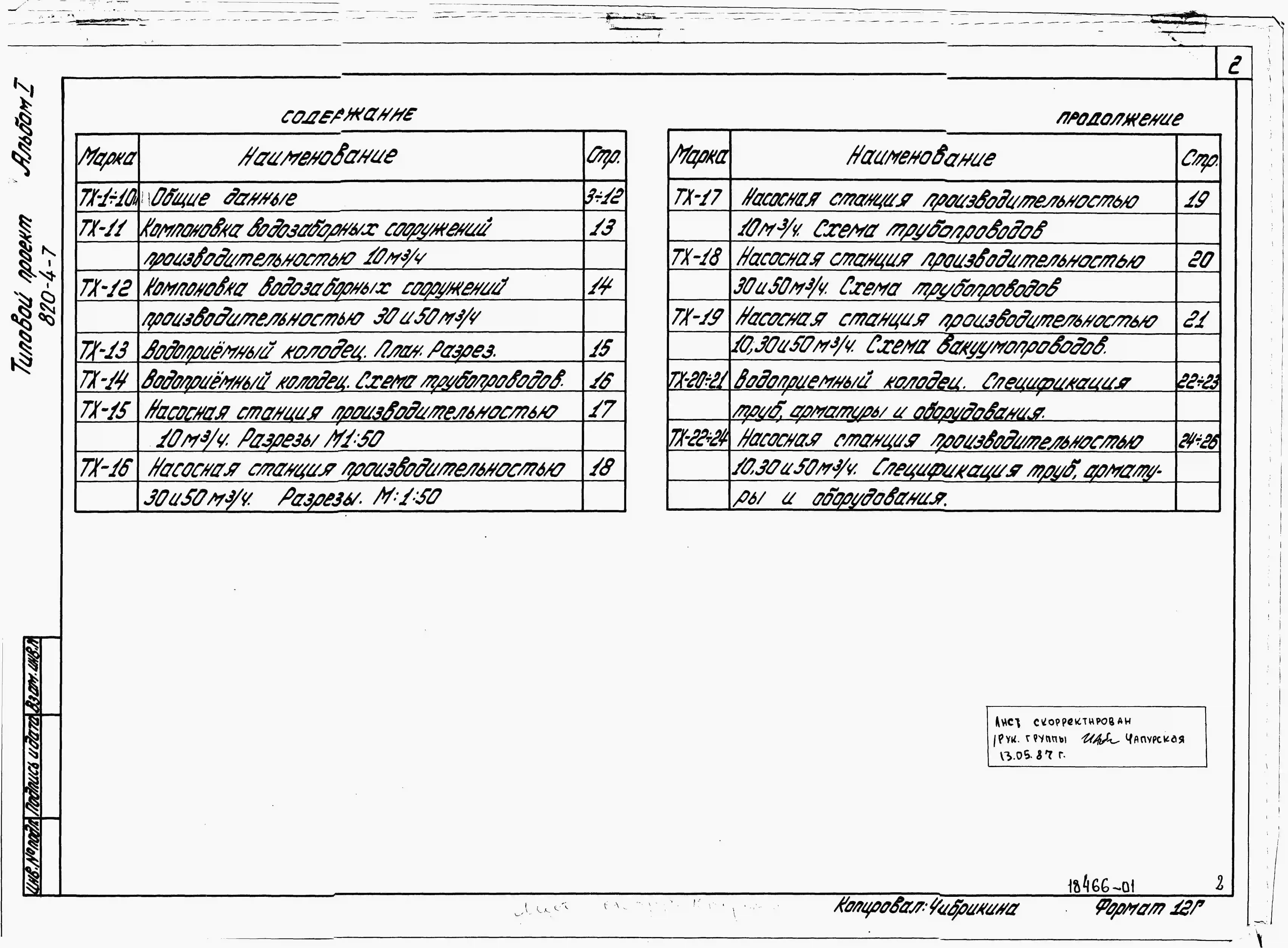 Типовой проект 820-4-7 Вакуум-сифонные водозаборные сооружения из открытых источников с автоматизированными насосными станциями, оборудованными погружными насосами производительностью 10, 30 и 50 м.куб/ч. Подземная насосная станция