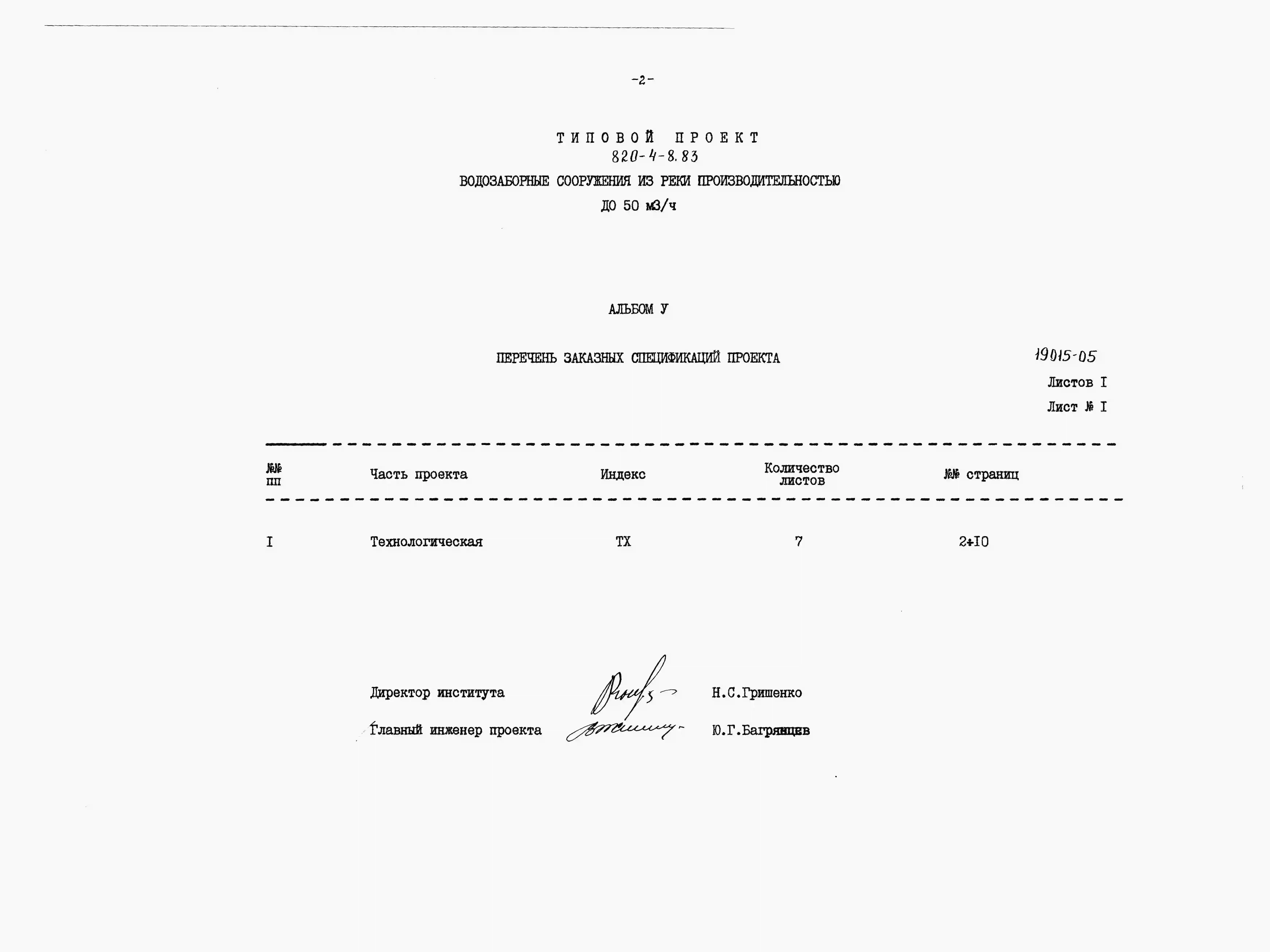 Типовой проект 820-4-8.83 Водозаборные сооружения из реки производительностью до 50 м.куб/ч