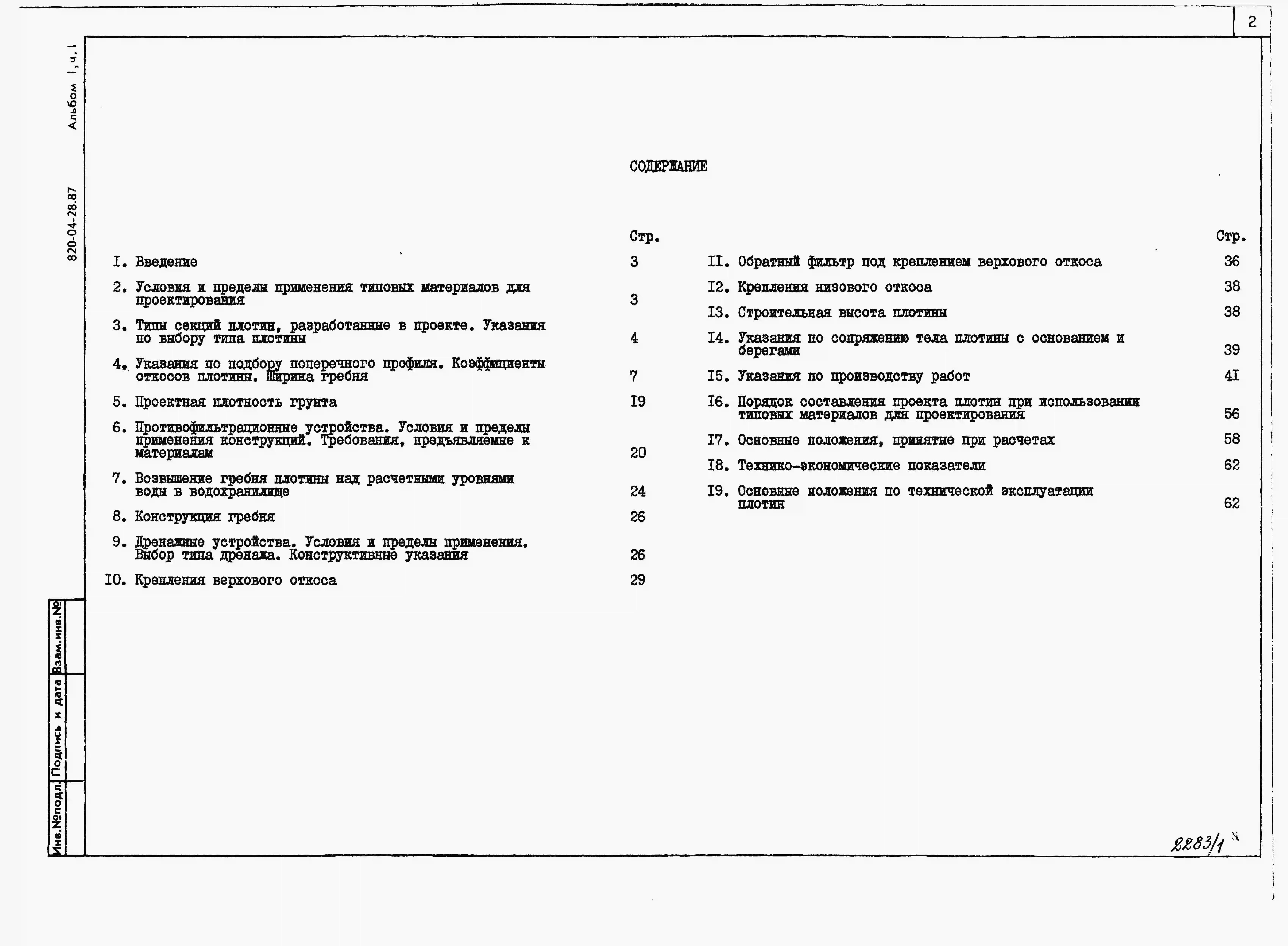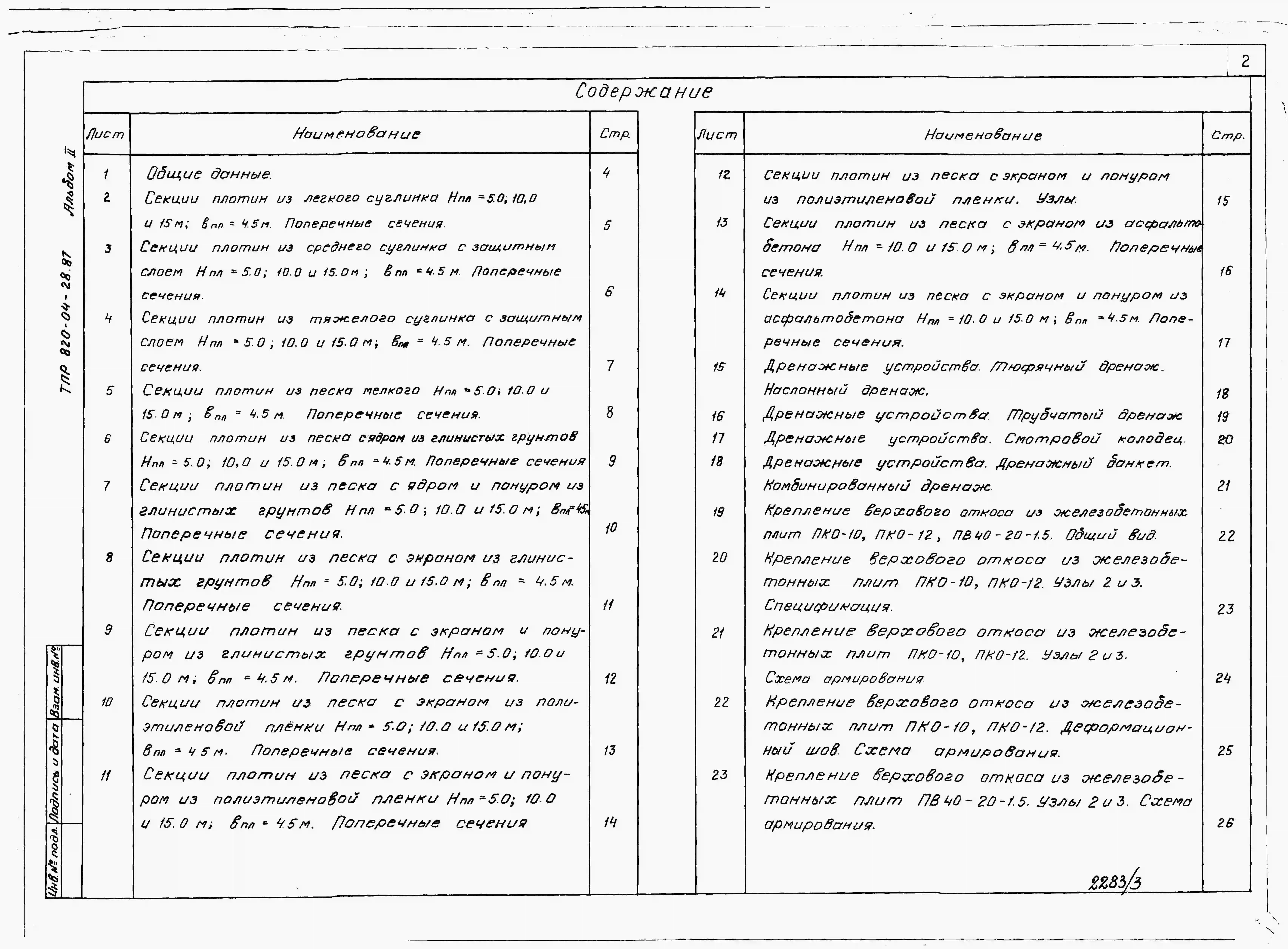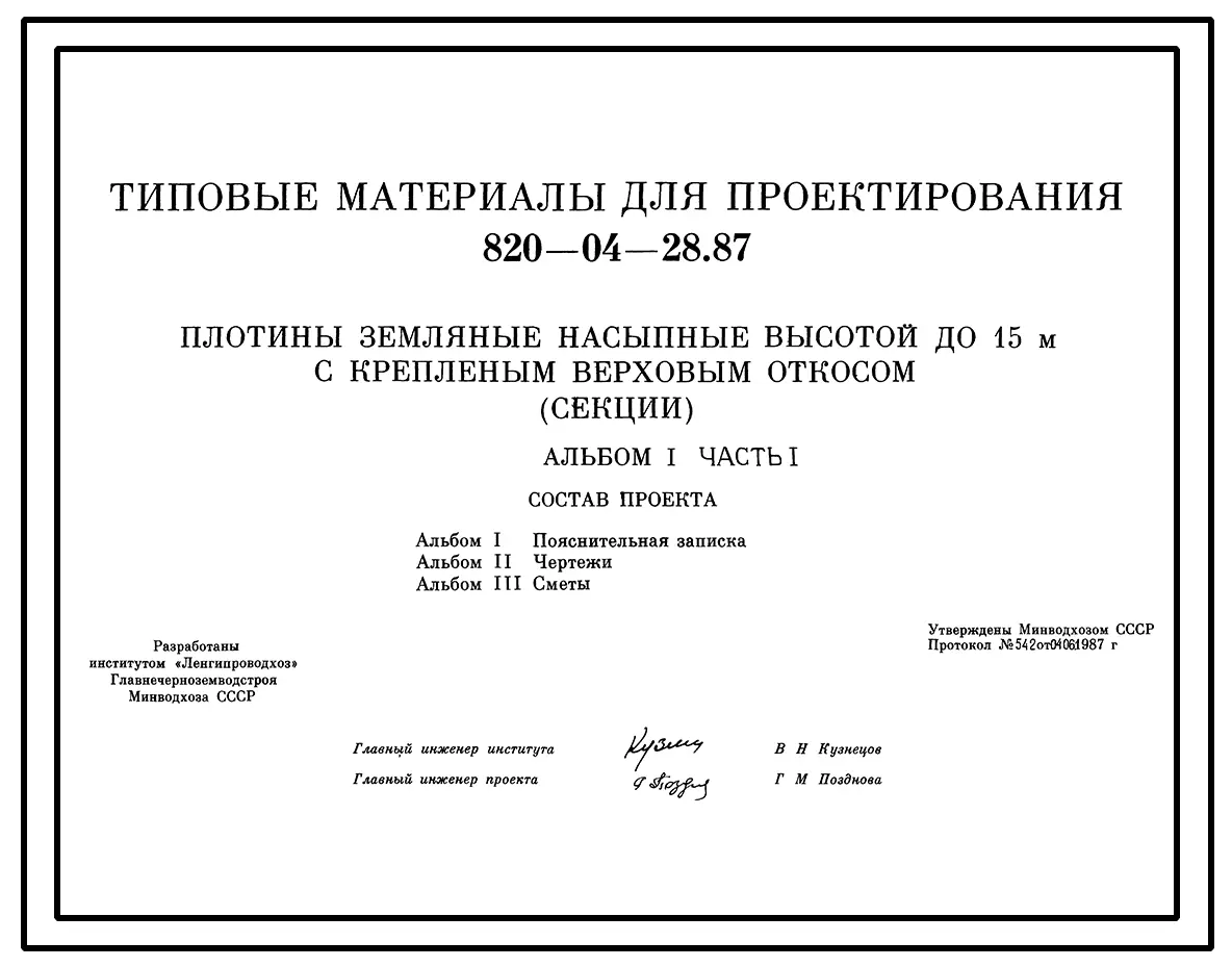 Типовой проект 820-04-28.87 Плотины земляные насыпные высотой до 15 м с крепленым верховым откосом (секции)