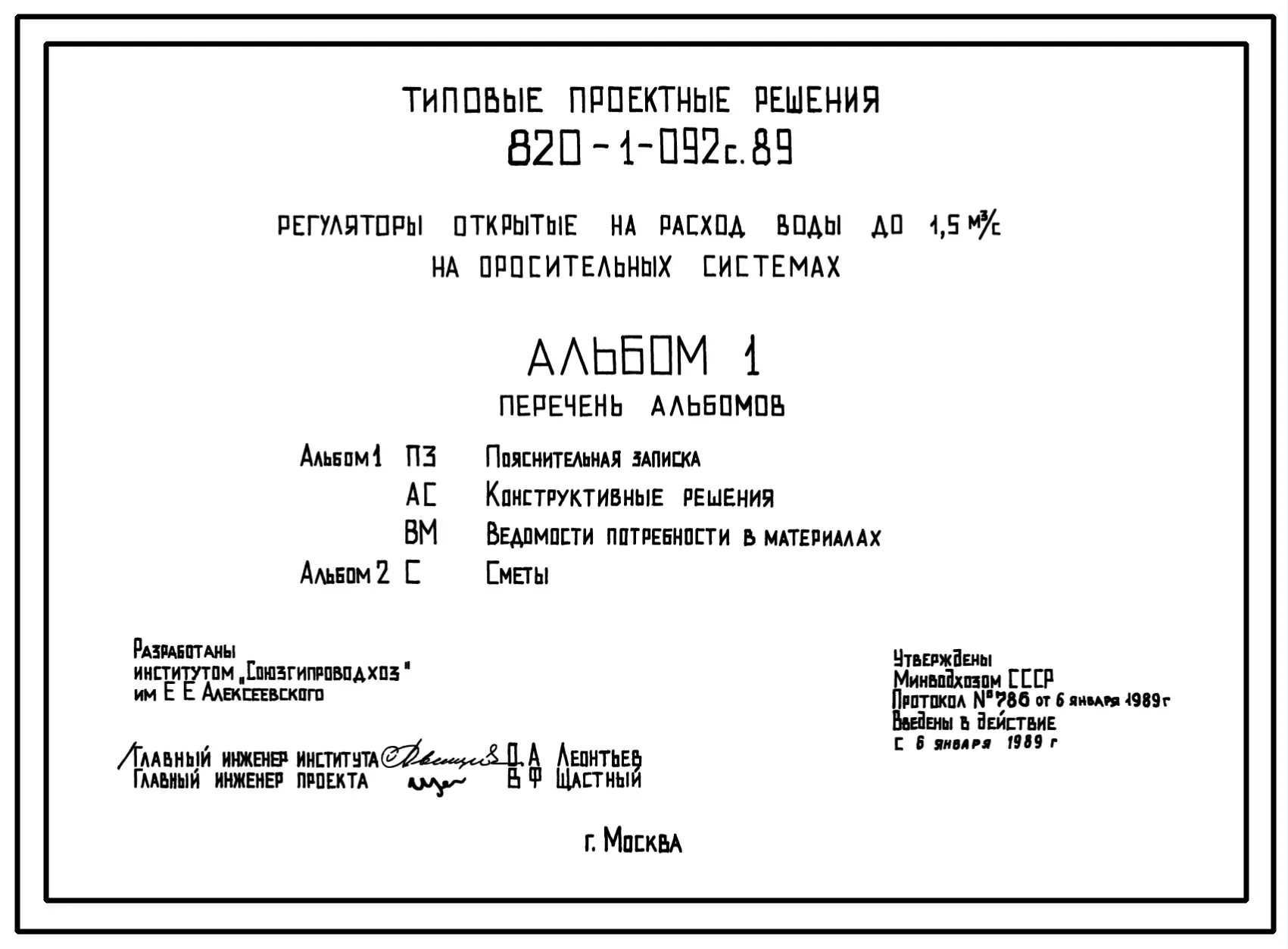 Типовой проект 820-1-092с.89 Регуляторы на расход воды до 1,5 м.куб/с на оросительных системах.