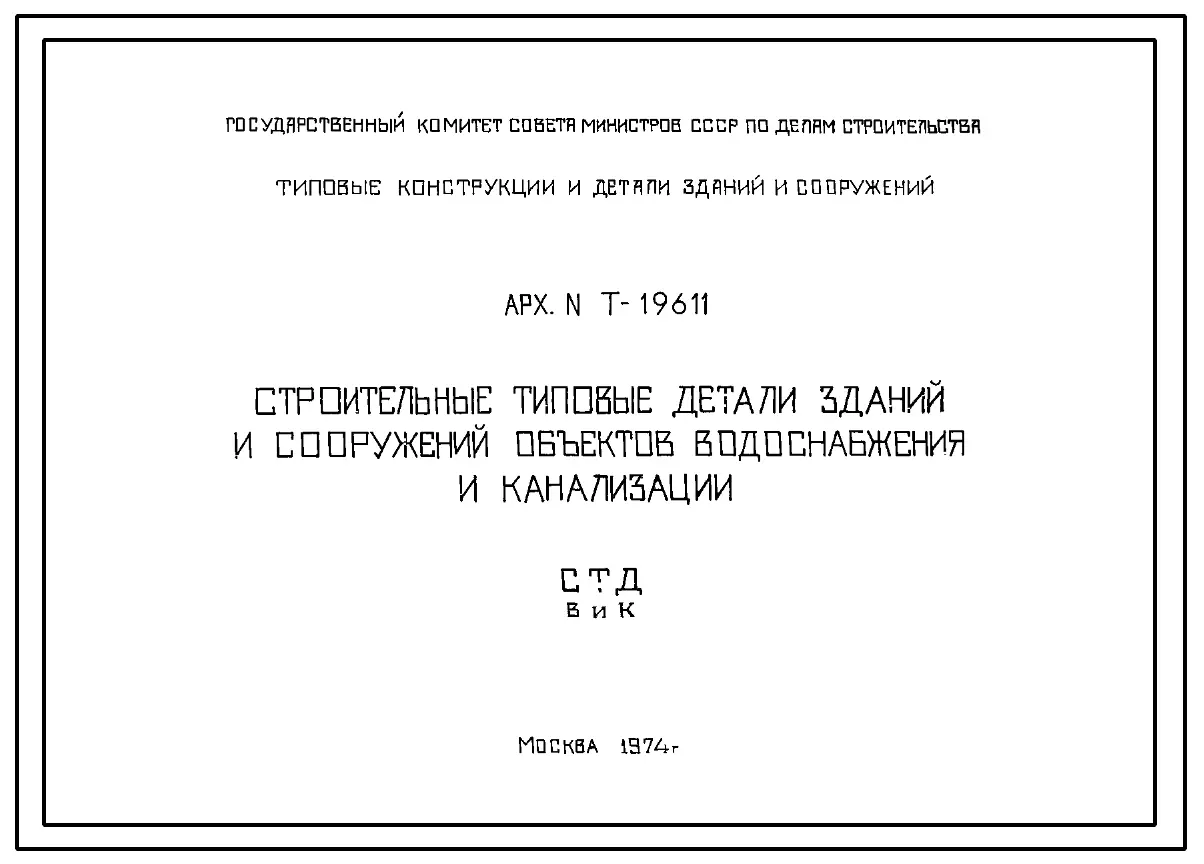 Технический проект Т-19611 Строительные типовые детали зданий и сооружений объектов водоснабжения и канализации