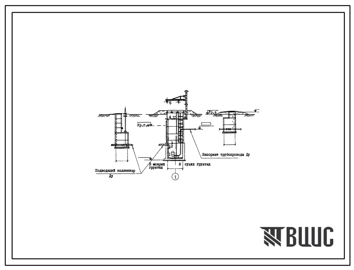Типовой проект 902-1-53 Канализационная насосная станция с погружными электронасосами производительностью 5-20 м3/час с напором от 10 до 40 м при глубине заложения подводящего коллектора 3,0; 4,0 и 5,0 м