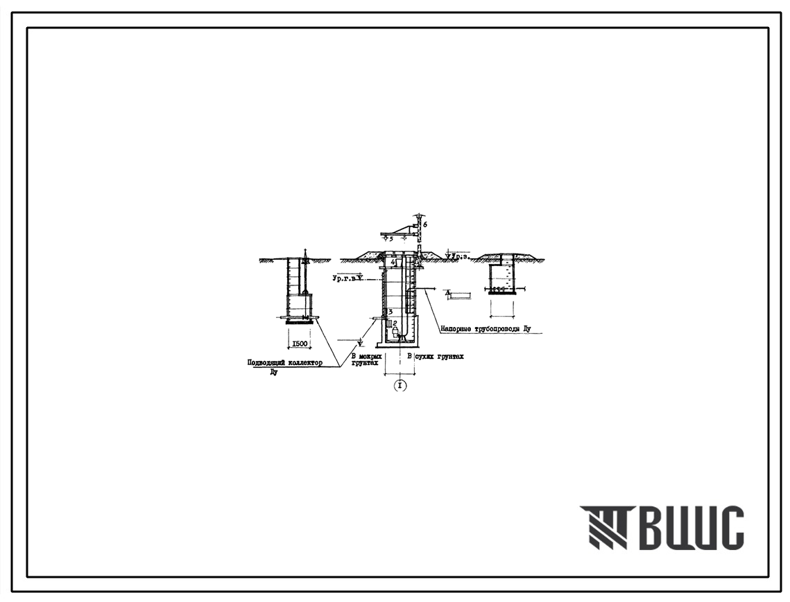 Типовой проект 902-1-43 Канализационная насосная станция с погружными электронасосами производительностью 5-20 м3/час с напором от 10 до 40 м при глубине заложения подводящего коллектора 3,0; 4,0 и 5,0 м (проект переведен в DWG)