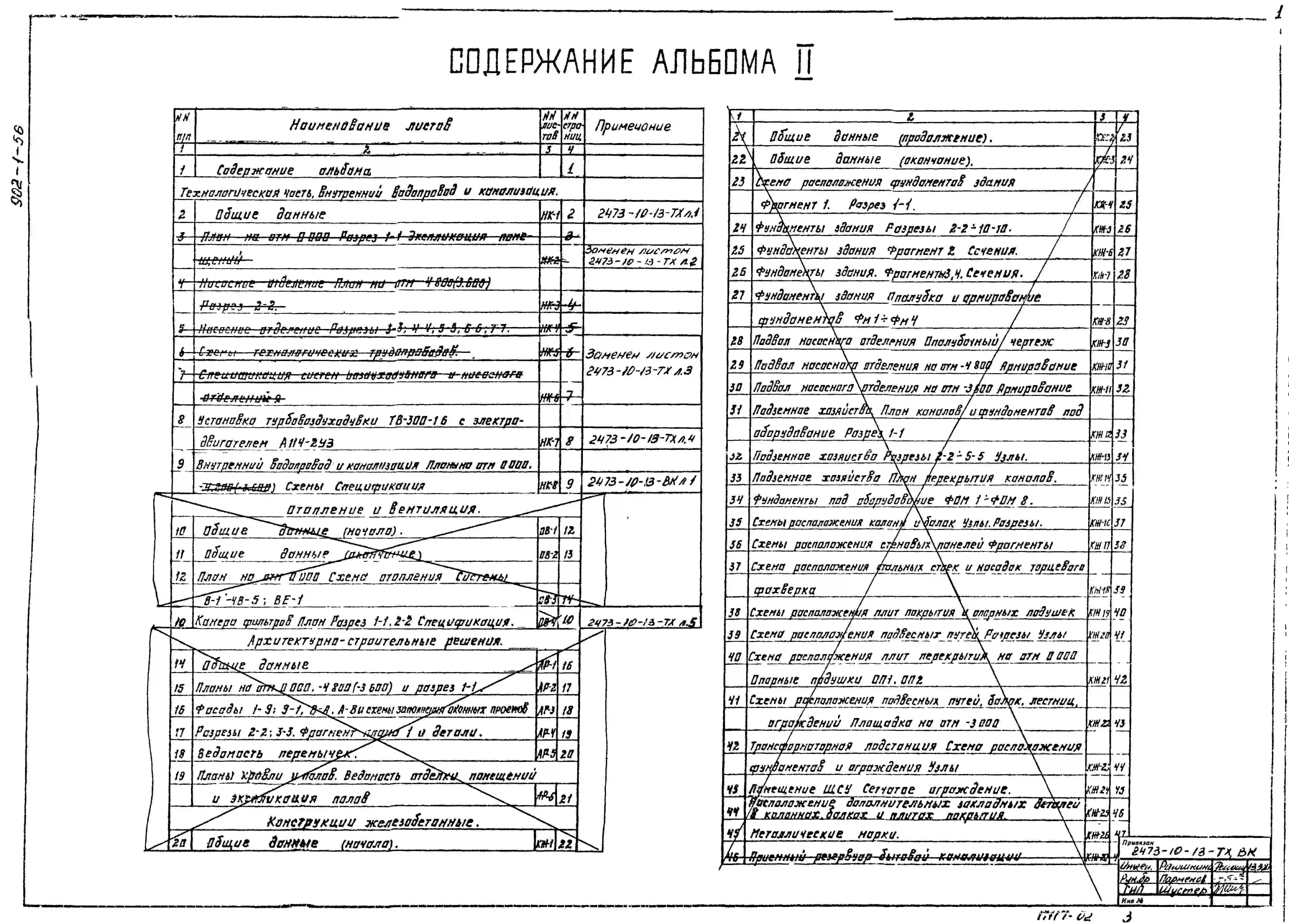 Типовой проект 902-1-56 Насосно-воздуходувная станция с 6 турбовоздуходувками ТВ-300-1,6