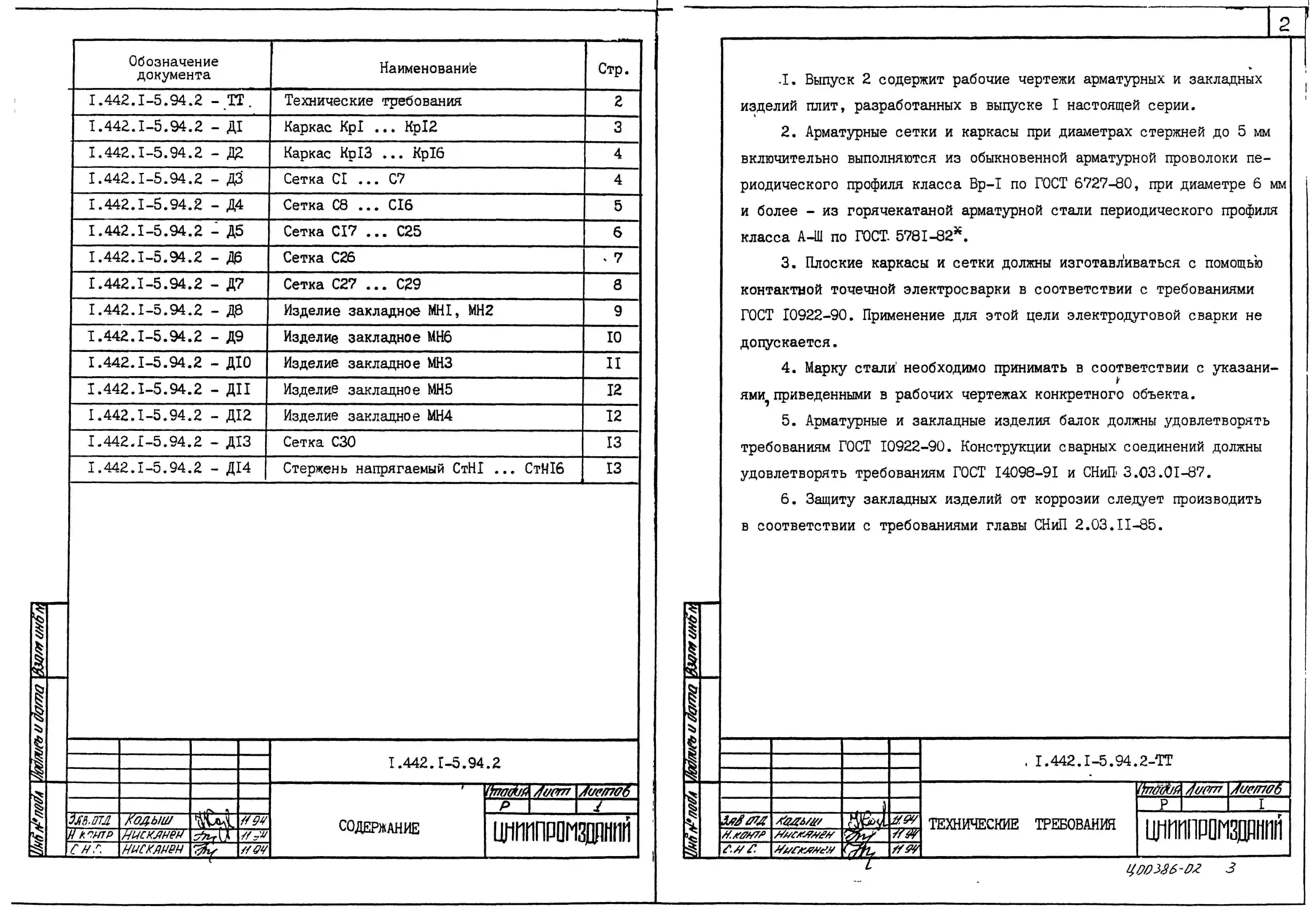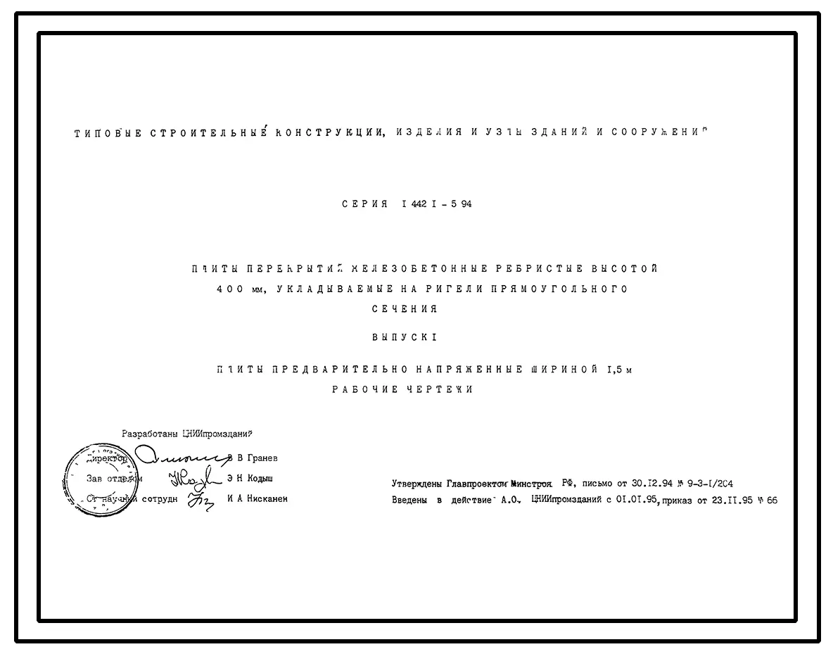 Серия 1.442.1-5.94 Плиты перекрытий железобетонные ребристые высотой 400 мм, укладываемые на ригели прямоугольного сечения. Рабочие чертежи.