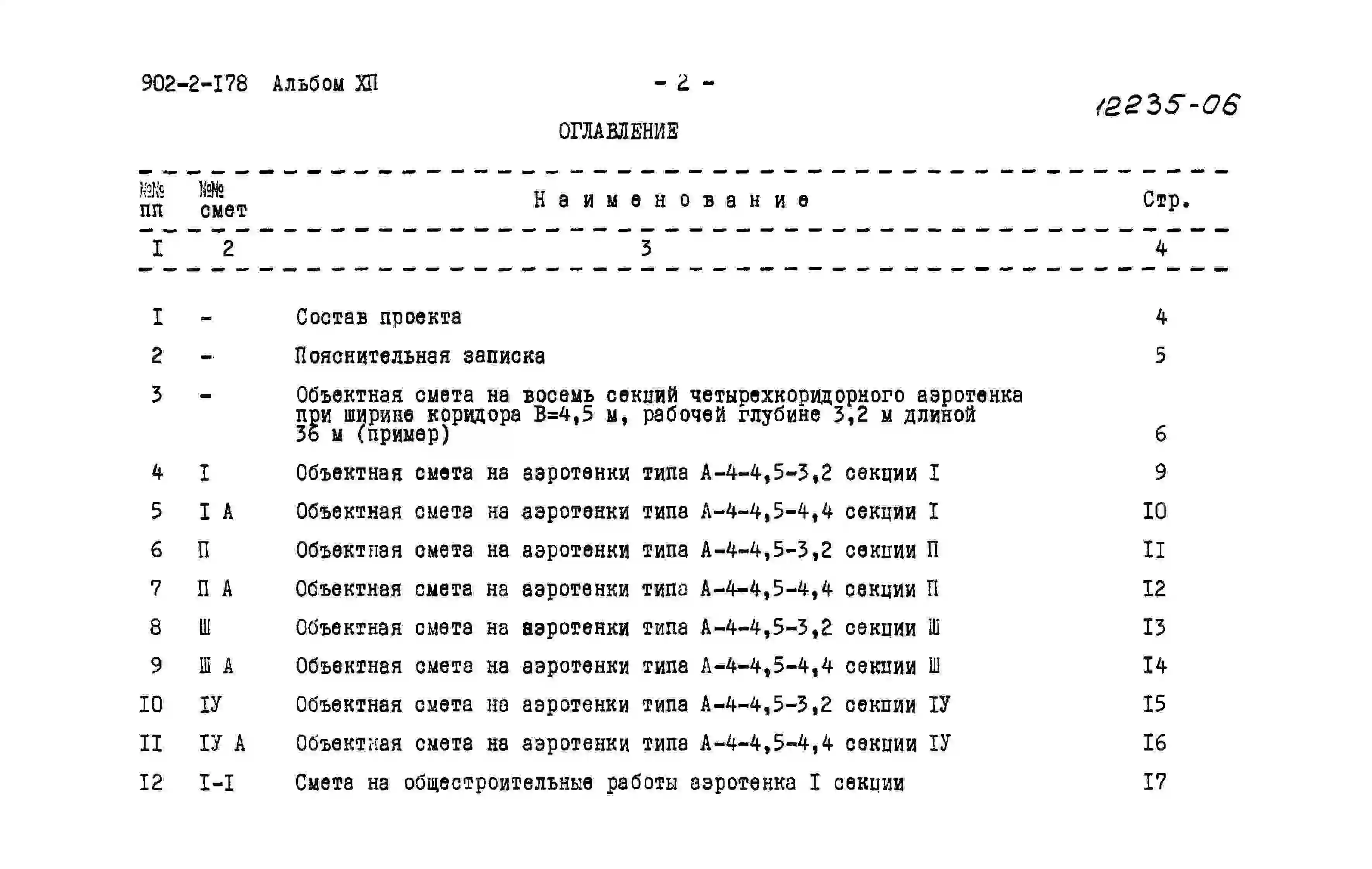 Типовой проект 902-2-178 Аэротенки четырехкоридорные. Ширина коридора В = 4,5 м. Тип А-4-4,5-3,2(4,4)