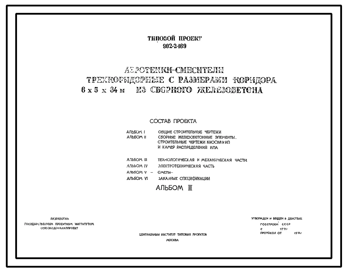 Типовой проект 902-2-169 Аэротенки-смесители трехкоридорные с размерами коридора 6х5х84м из сборного железобетона