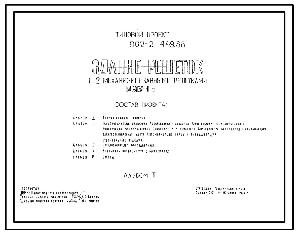 Типовой проект 902-2-449.88 Здание решеток с 2 механизированными решетками РМУ-1Б