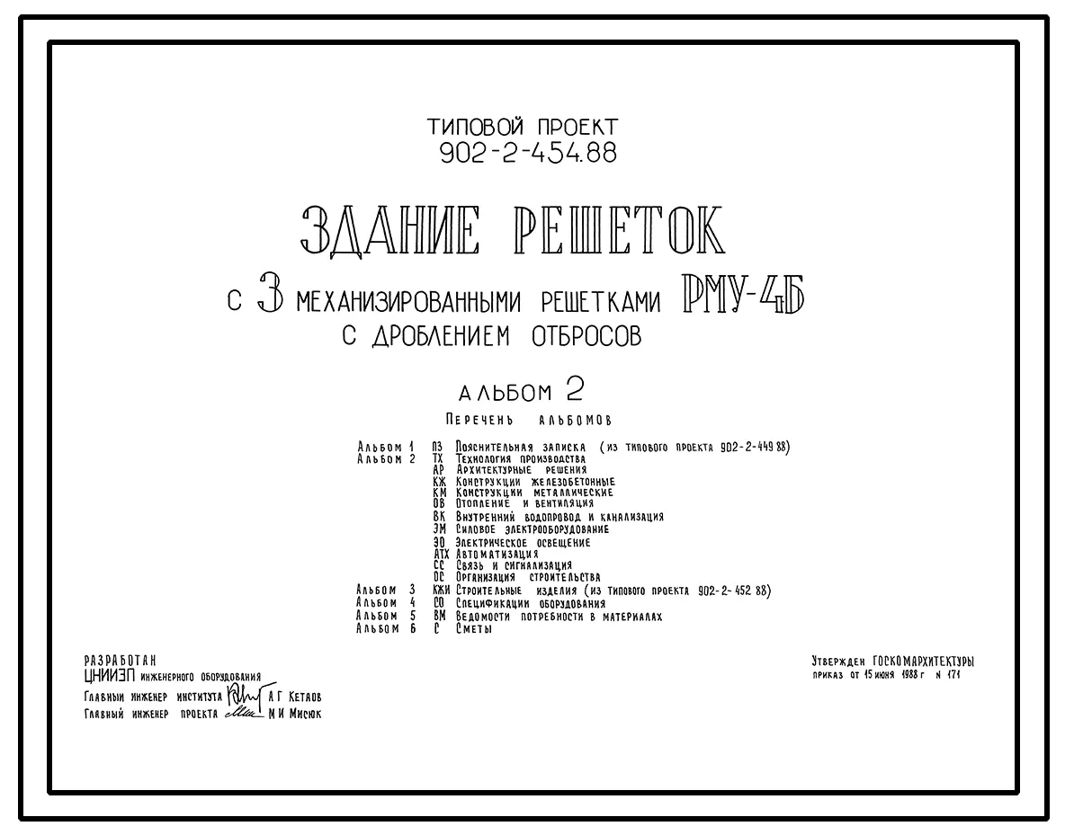 Типовой проект 902-2-454.88 Здание решеток с 3 механизированными решетками РМУ-4Б с дроблением отбросов