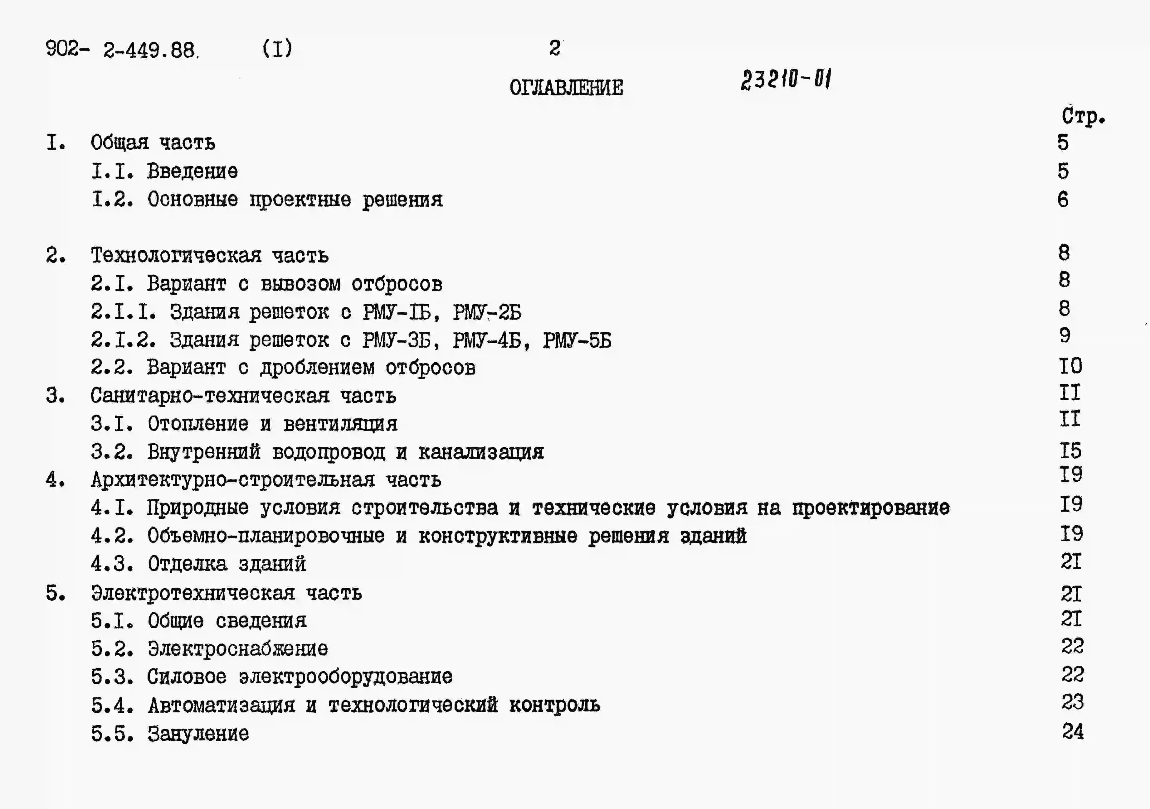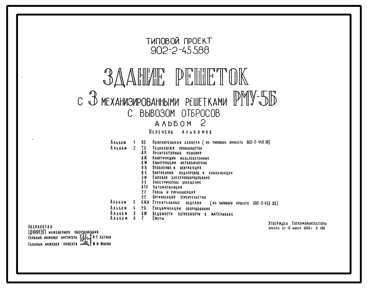 Типовой проект 902-2-455.88 Здание решеток с 3 механизированными решетками РМУ-5Б с вывозом отбросов