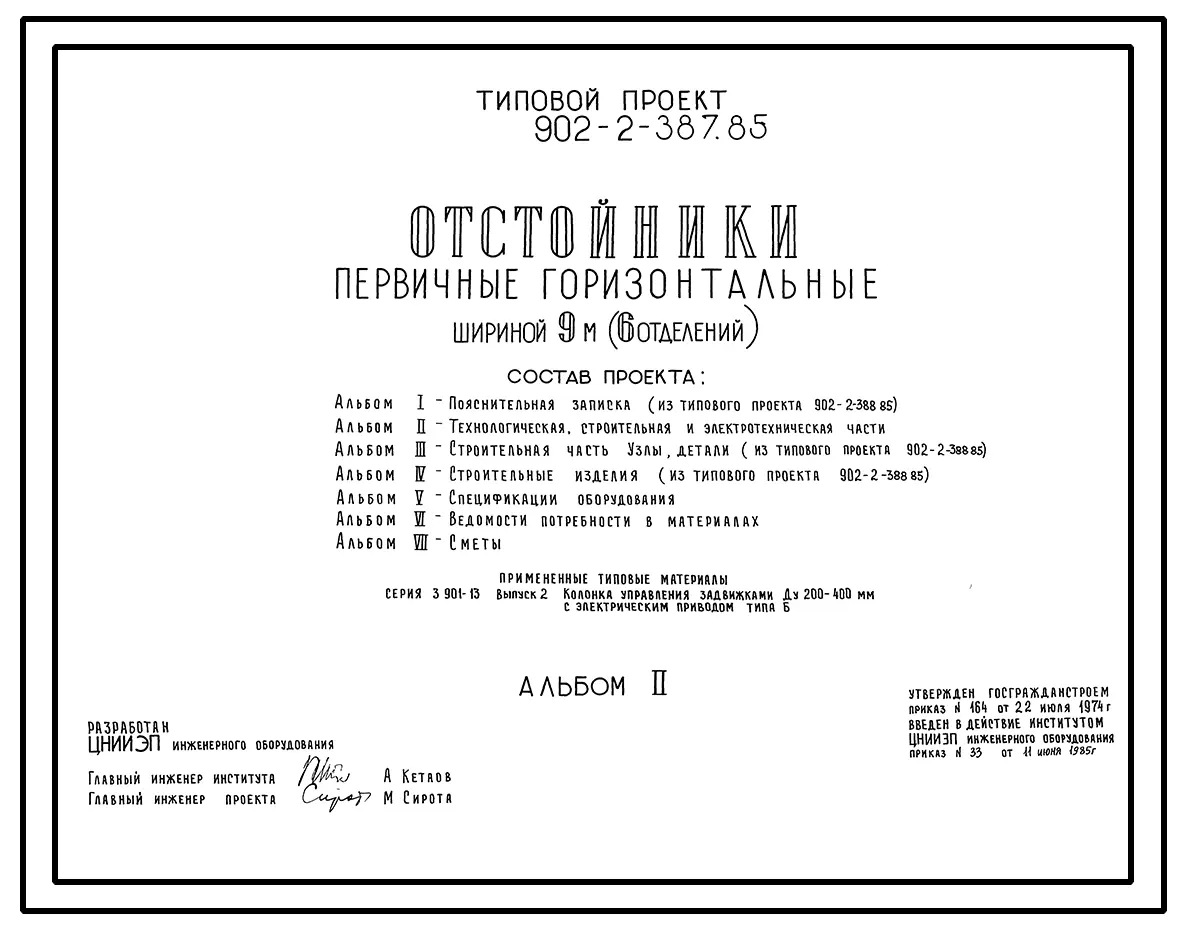 Типовой проект 902-2-387.85 Отстойники горизонтальные первичные шириной 9 м (6 отделений). Производительность 70 тыс. м3/сут