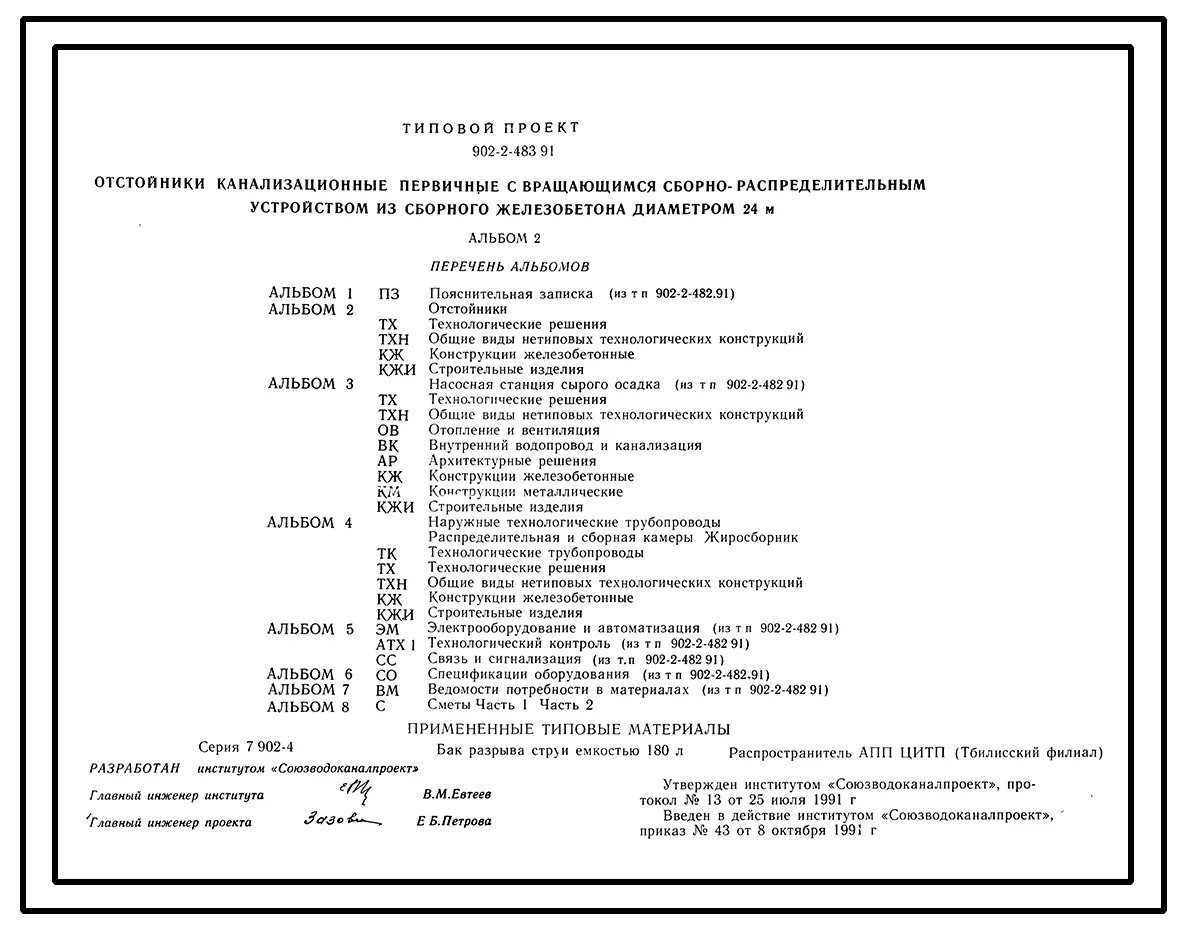 Типовой проект 902-2-483.91 Отстойники канализационные радиальные первичные с вращающимися сборно-распределительными устройствами из сборного железобетона диаметром 24 м