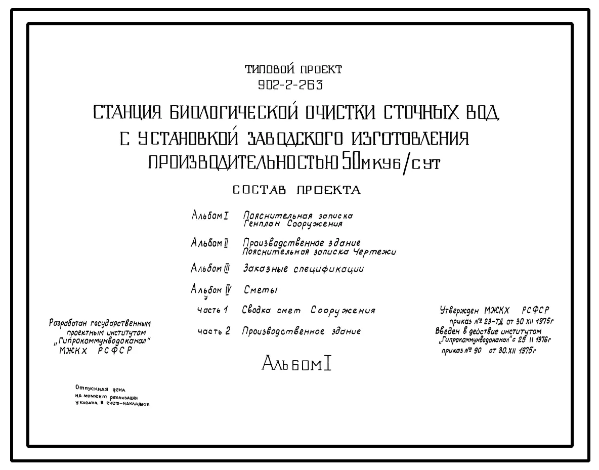 Типовой проект 902-2-263 Станция биологической очистки сточных вод заводского изготовления производительностью 50 м.куб/сутки