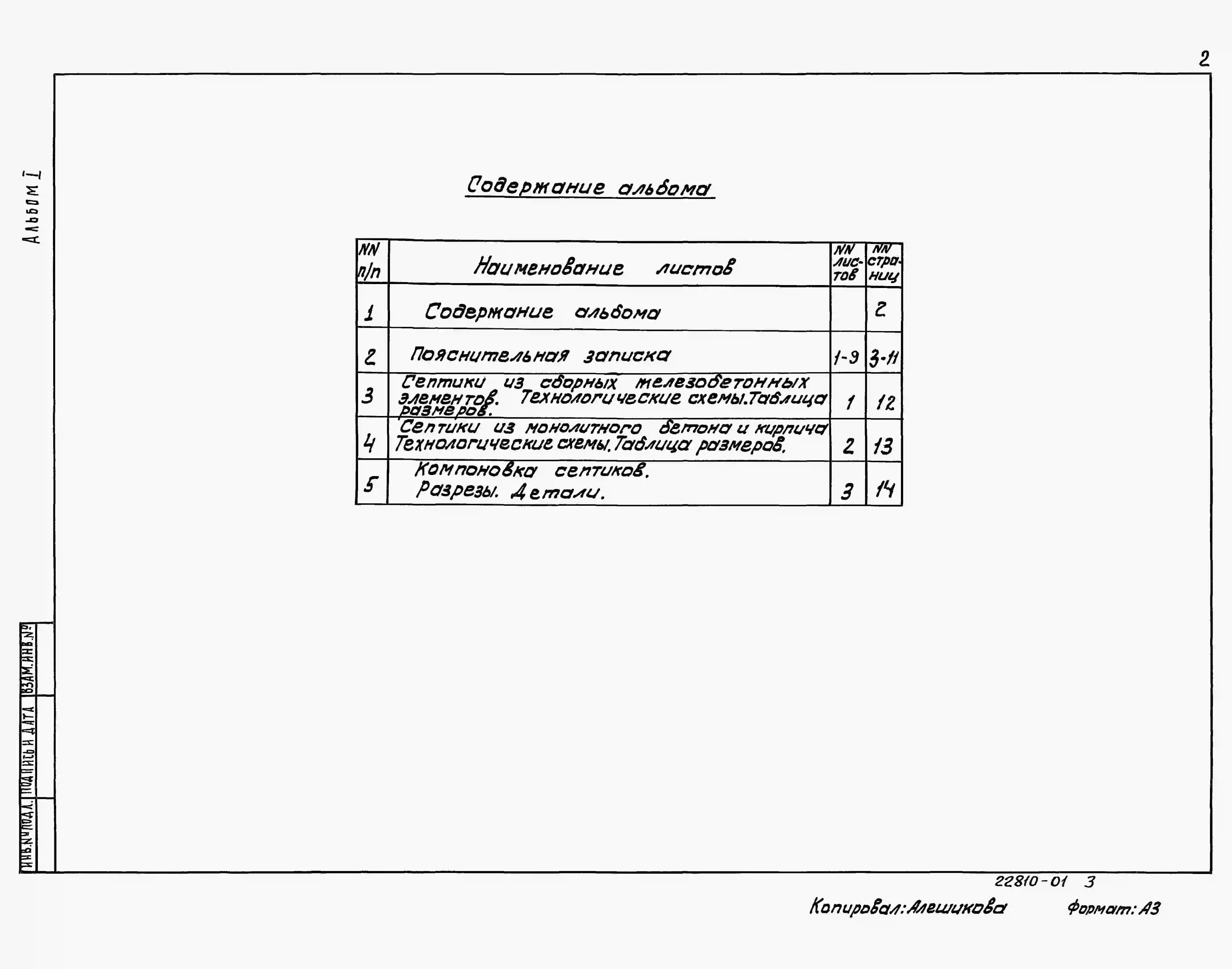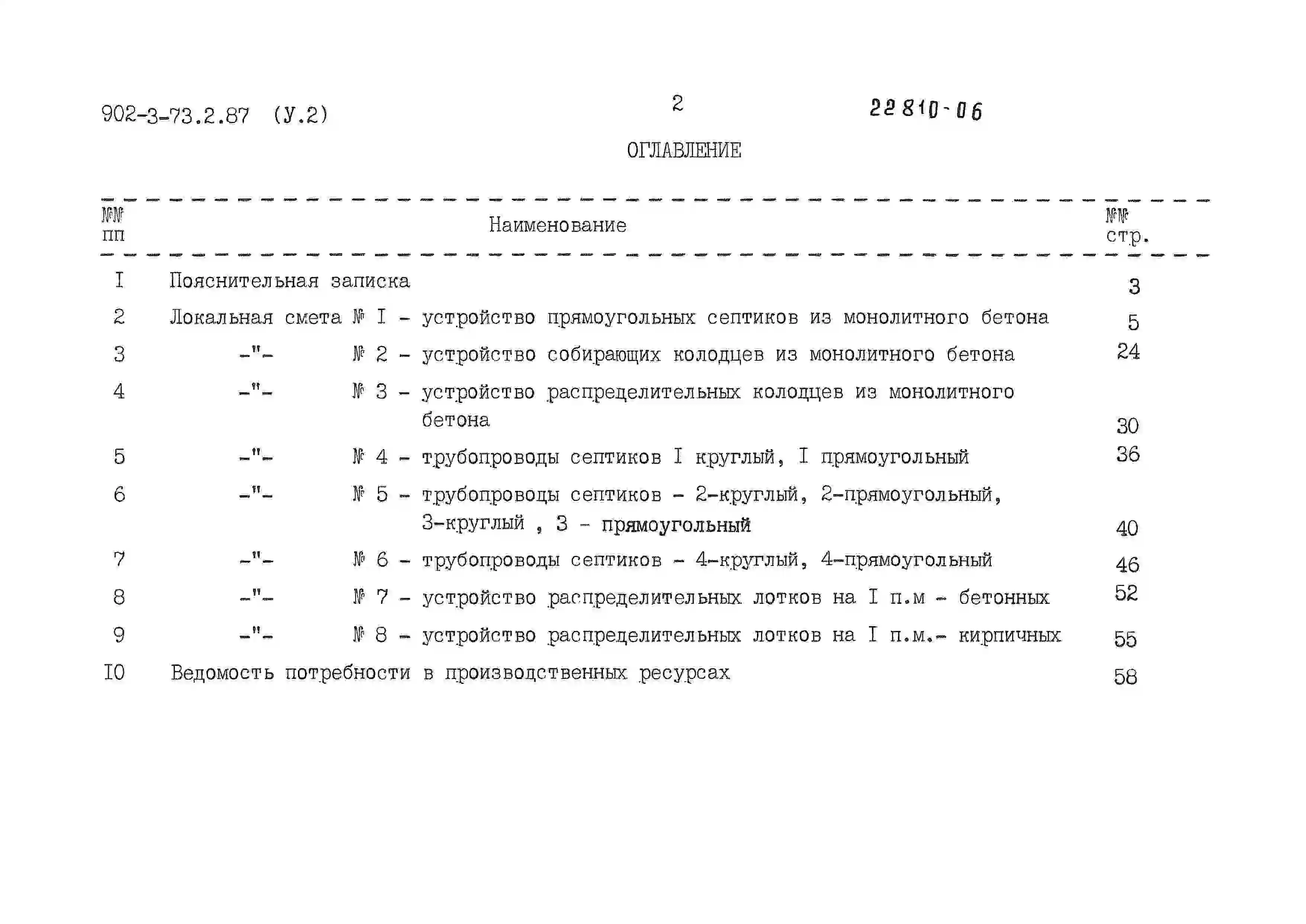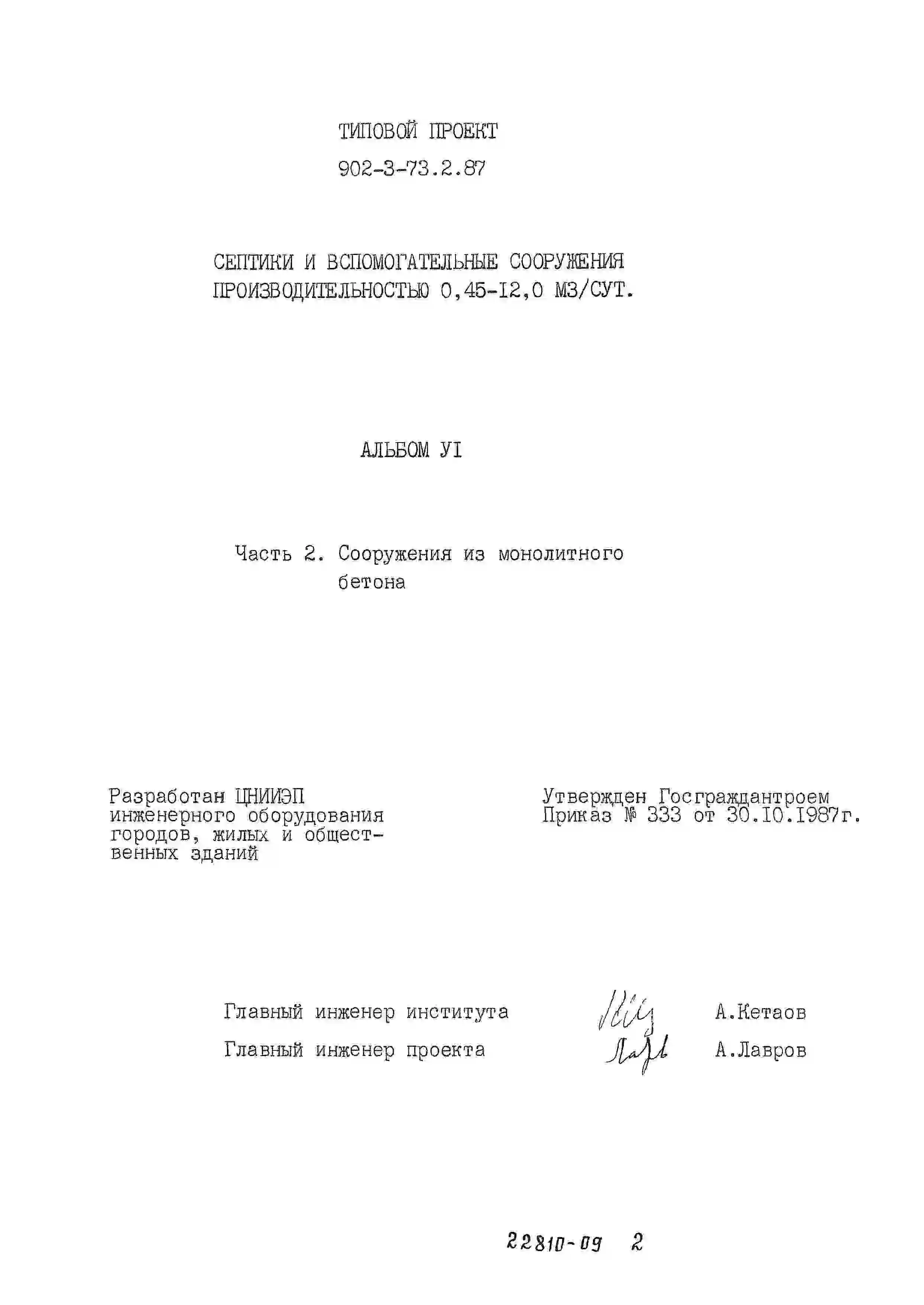 Типовой проект 902-3-73.2.87 Септики и вспомогательные сооружения производительностью 0,45 – 12,0 куб.м в сутки