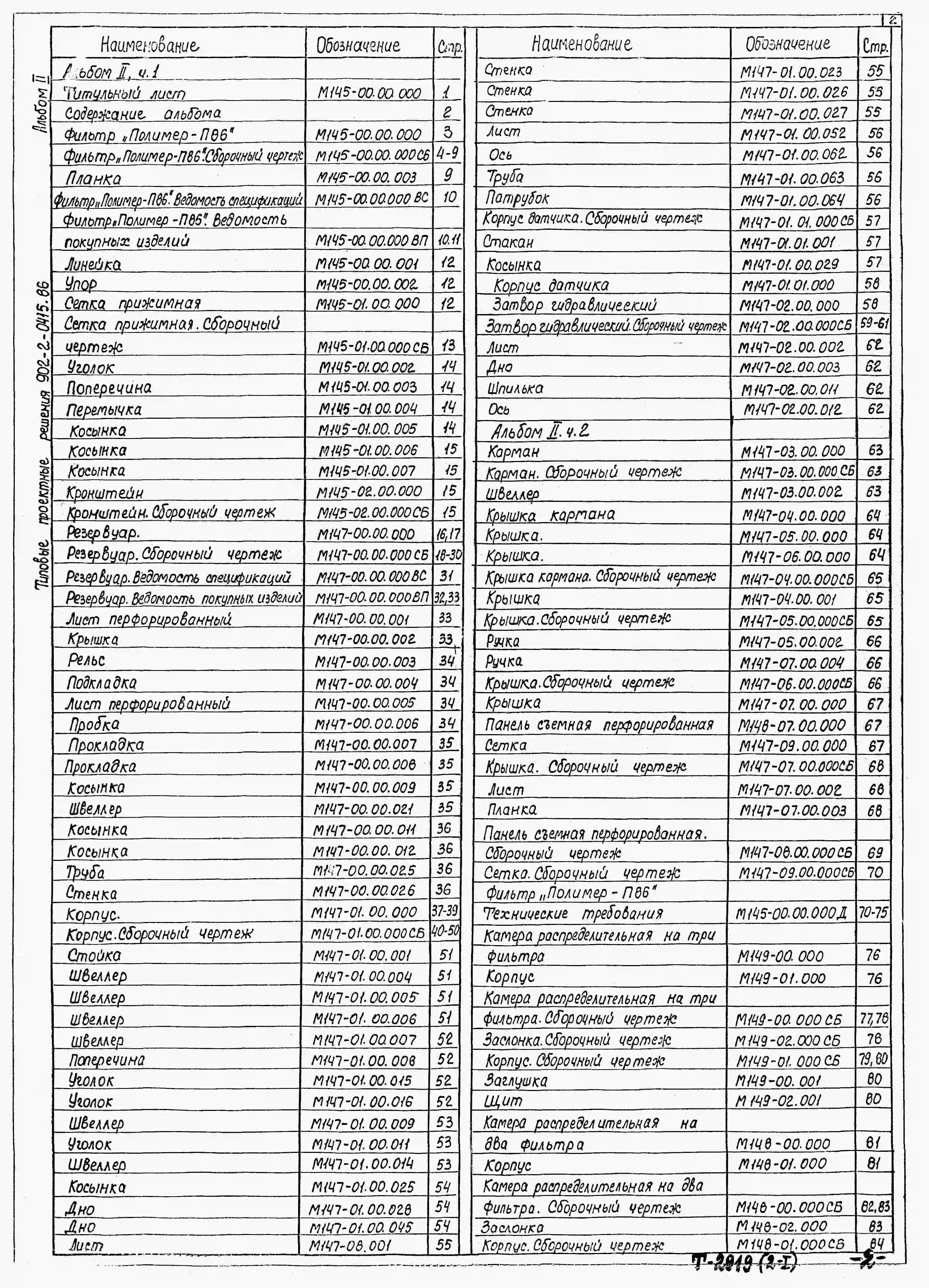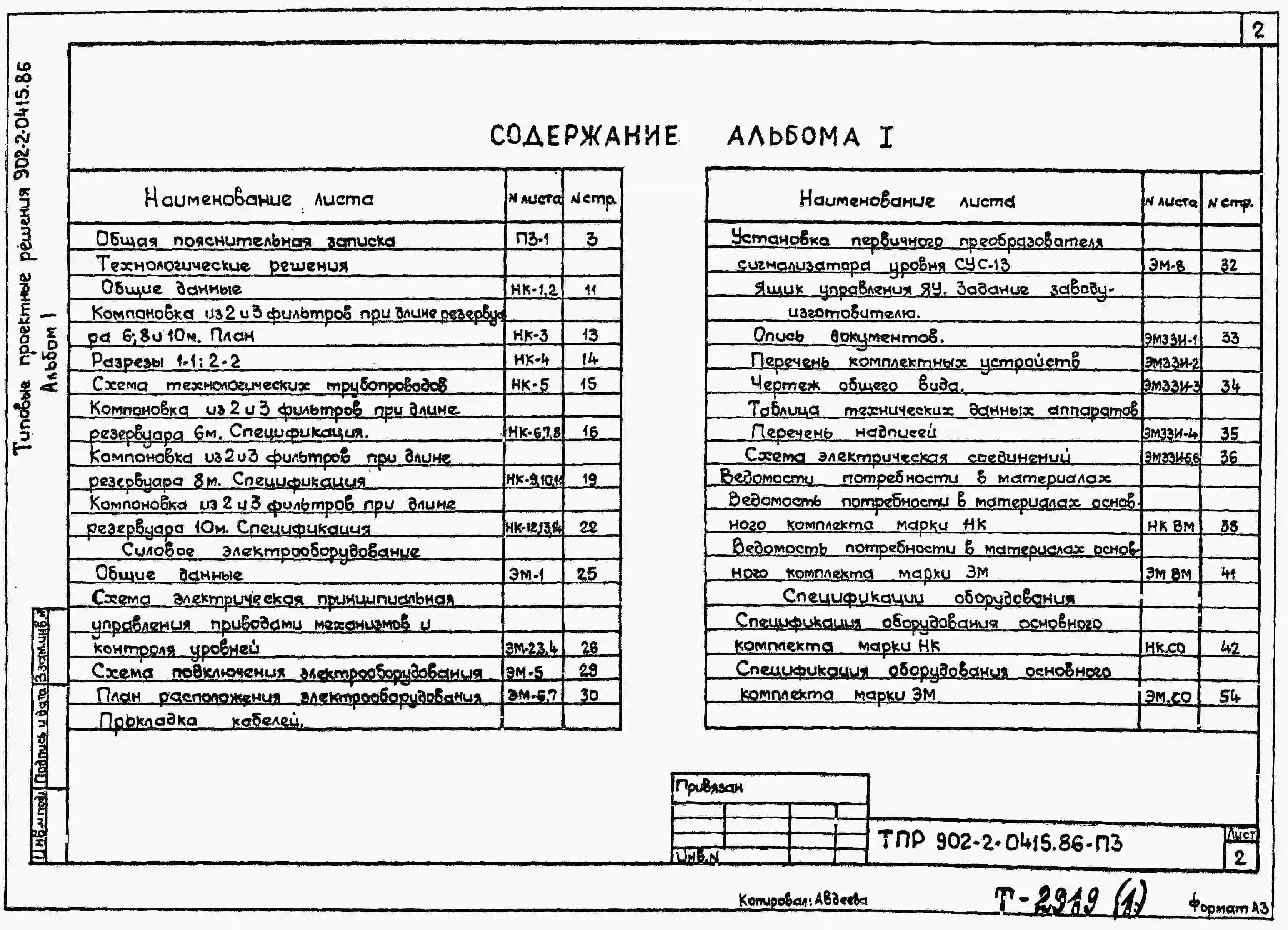 Типовой проект 902-2-0415.86 Фильтр пенополиуретановый с передвижным узлом регенерации для очистки сточных вод от нефтемаслопродуктов "Полимер-П-86"