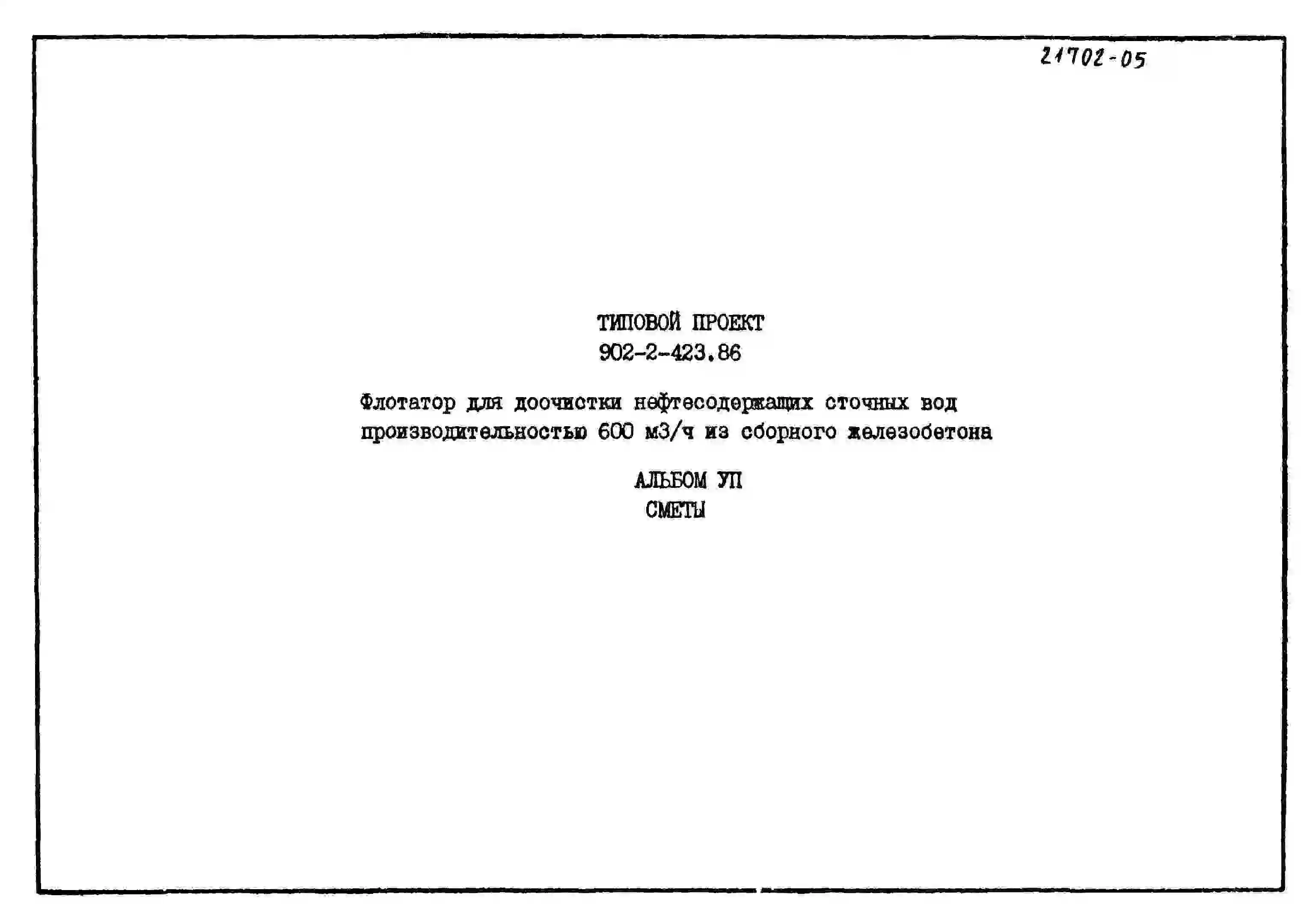 Типовой проект 902-2-423.86 Флотатор для доочистки нефтесодержащих сточных вод производительностью 600 куб.м/ч из сборного железобетона
