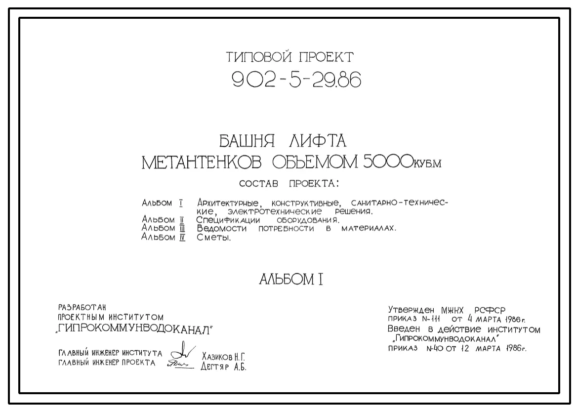 Типовой проект 902-5-29.86 Башня лифта метантенков объемом 5000 куб.м