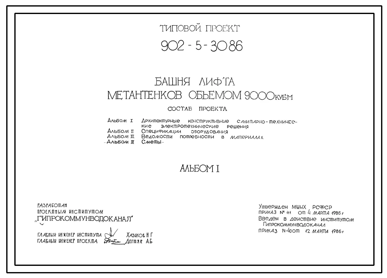 Типовой проект 902-5-30.86 Башня лифта метантенков объемом 9000 куб.м