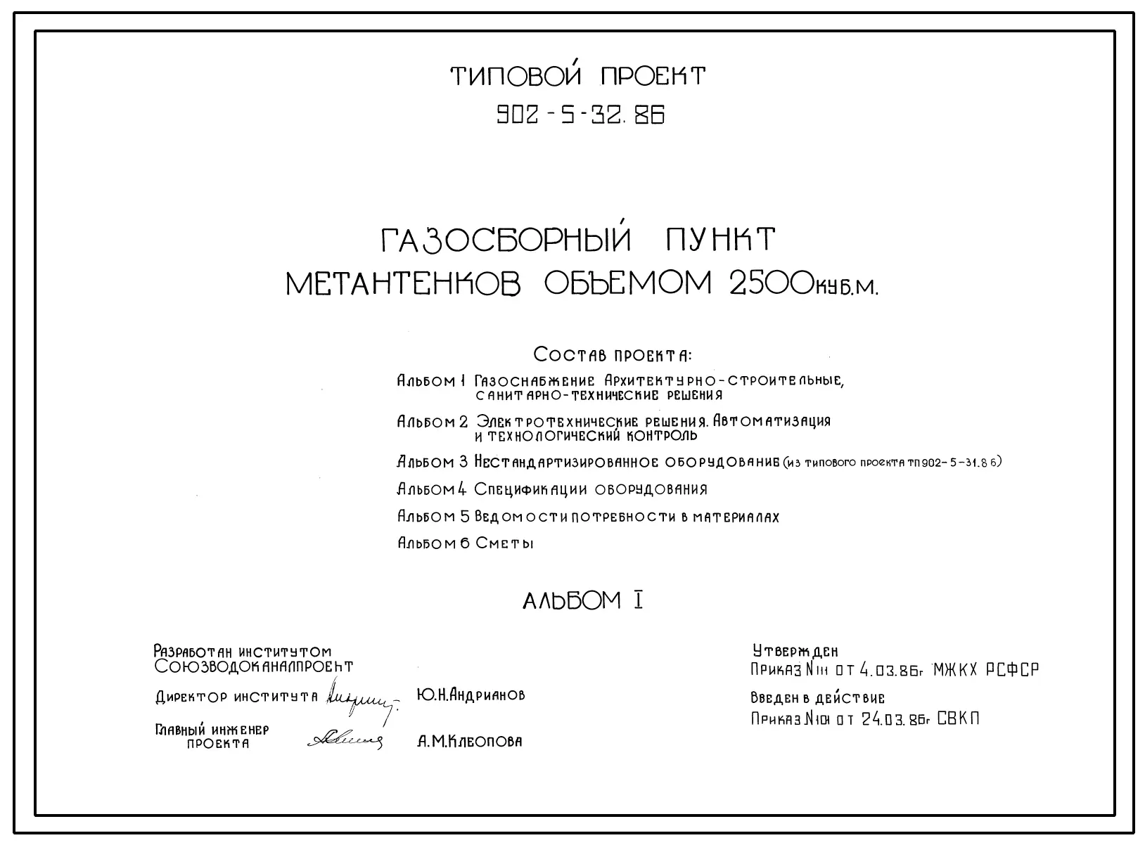 Типовой проект 902-5-32.86 Газосборный пункт метантенков объемом 2500 куб.м