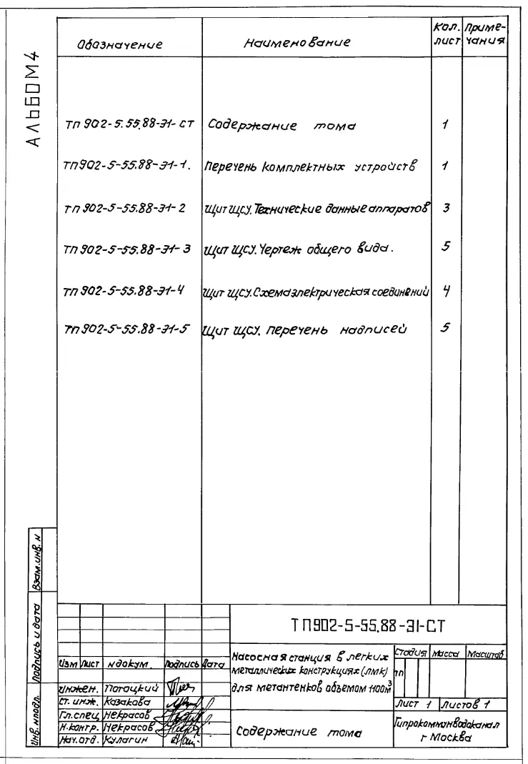Типовой проект 902-5-55.88 Насосная станция (в ЛМК) для метантенков объемом 1100 куб.м. Рабочие чертежи. Полный проект.