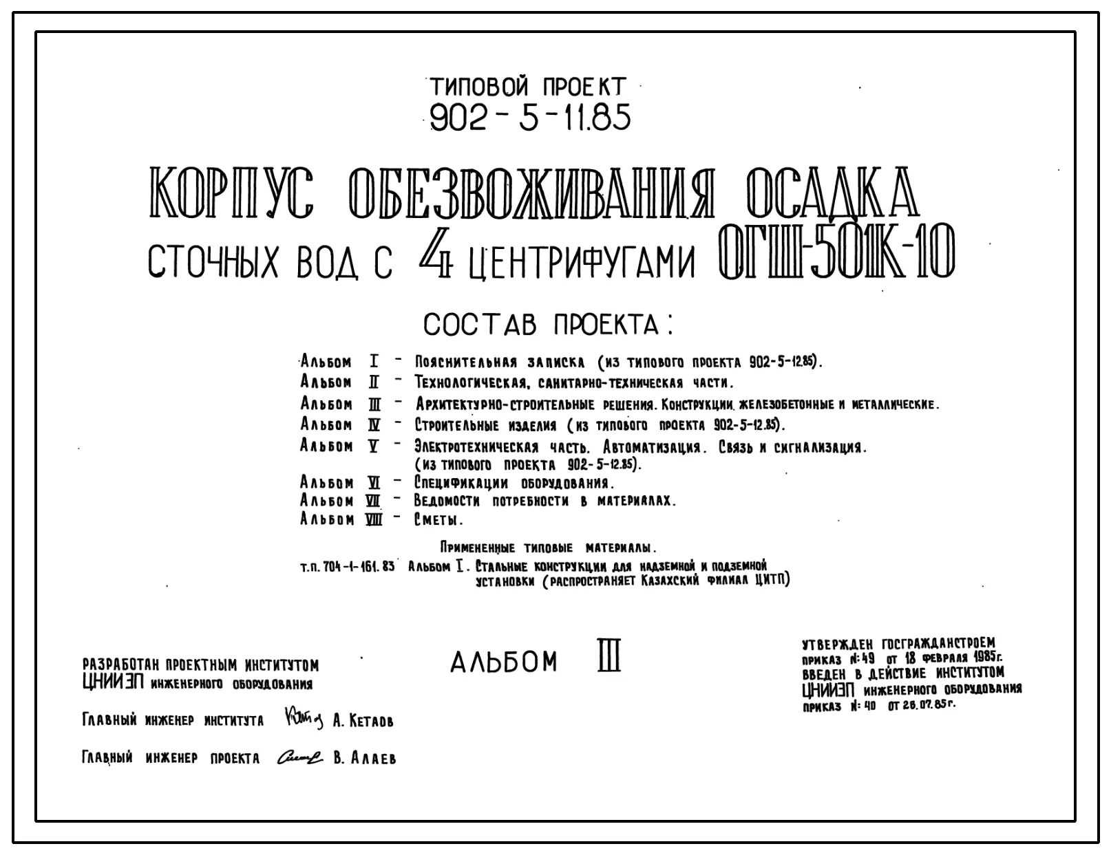 Типовой проект 902-5-11.85 Корпус обезвоживания осадка сточных вод с 4 центрифугами ОГШ-501К-10