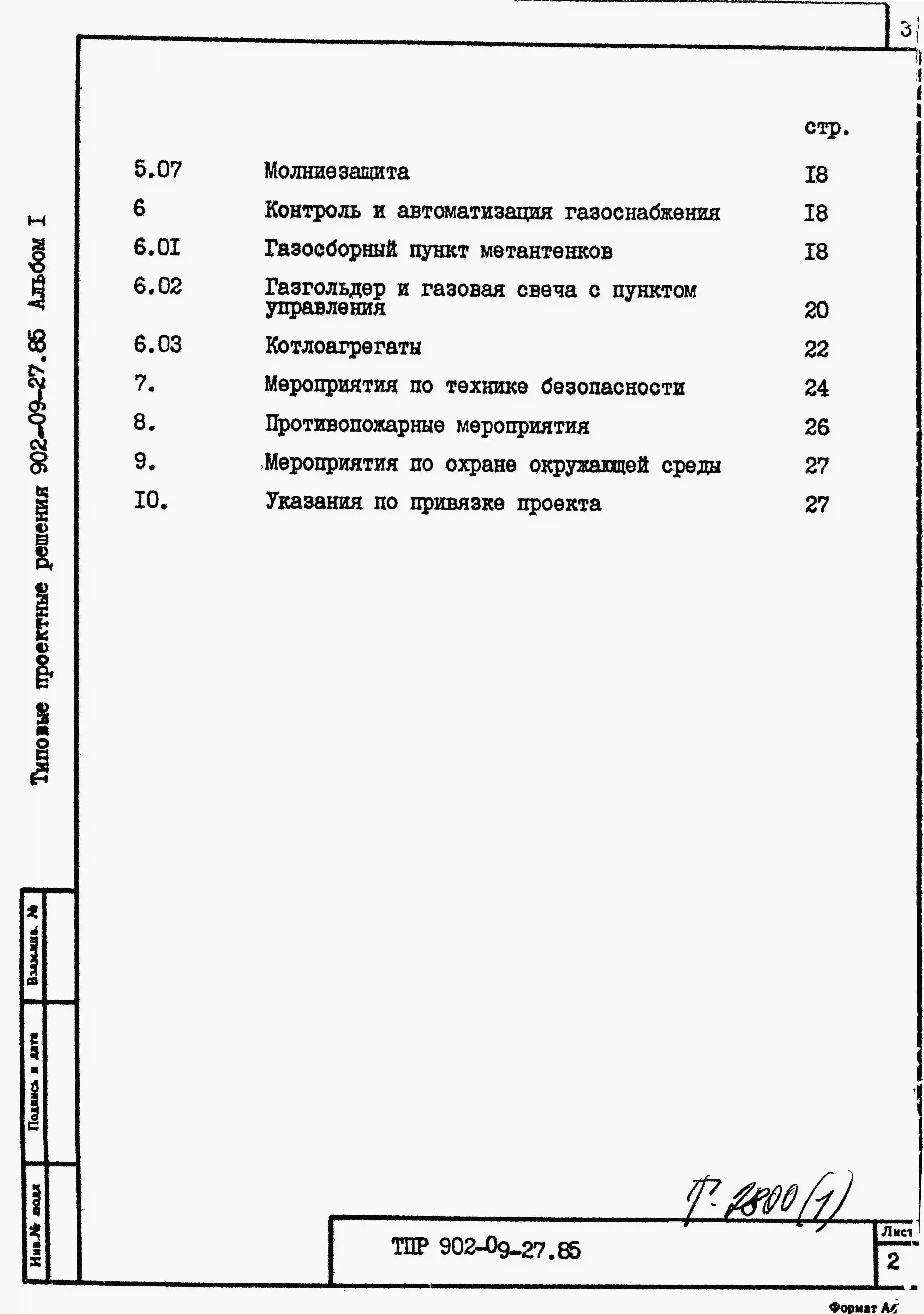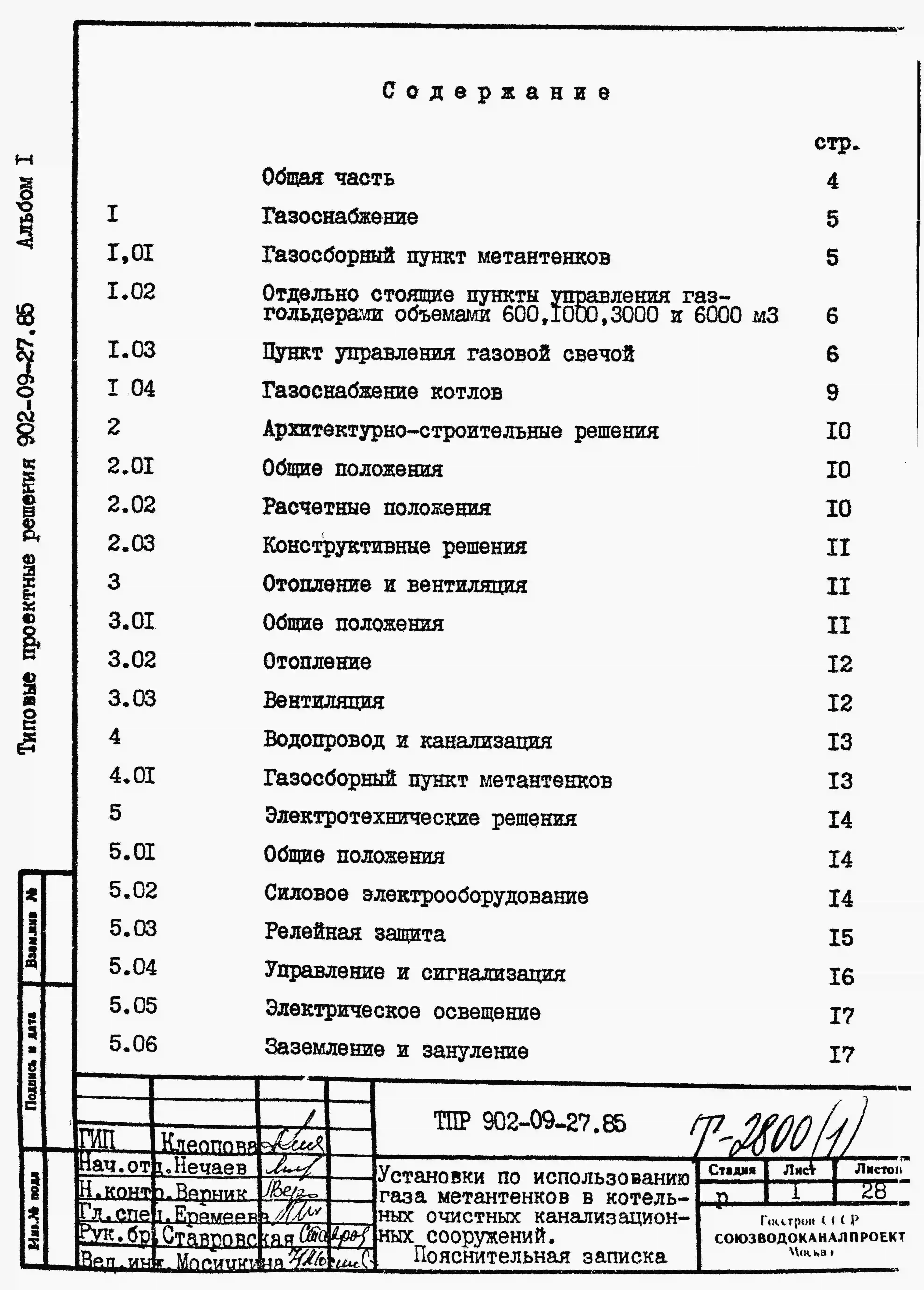 Типовой проект 902-09-27.85 Установки по использованию газа метантенков в котельных очистных канализационных сооружений