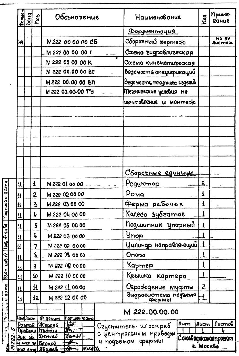 Шифр М222 Илоскреб-сгуститель с центральным приводом и подъемом фермы. Технические условие на изготовление и монтаж. Конструкторская документация.