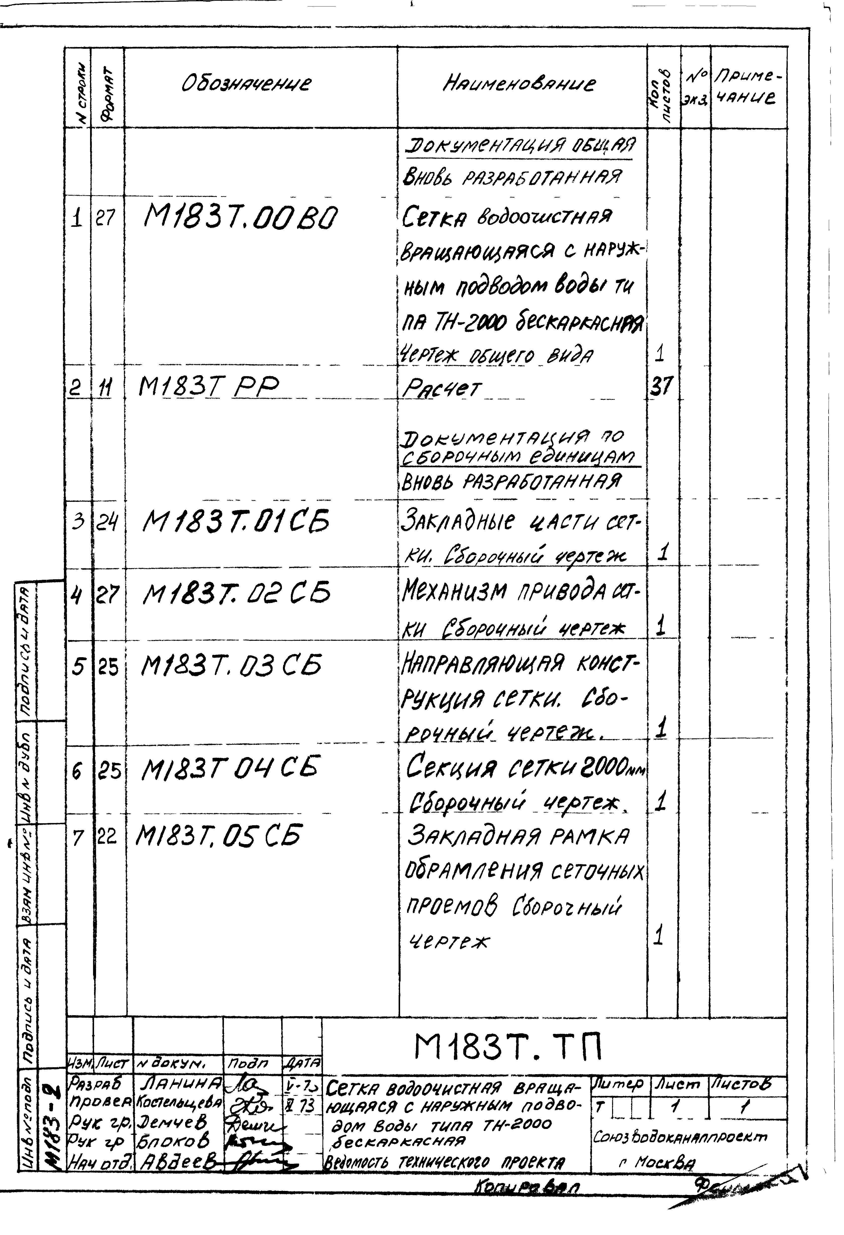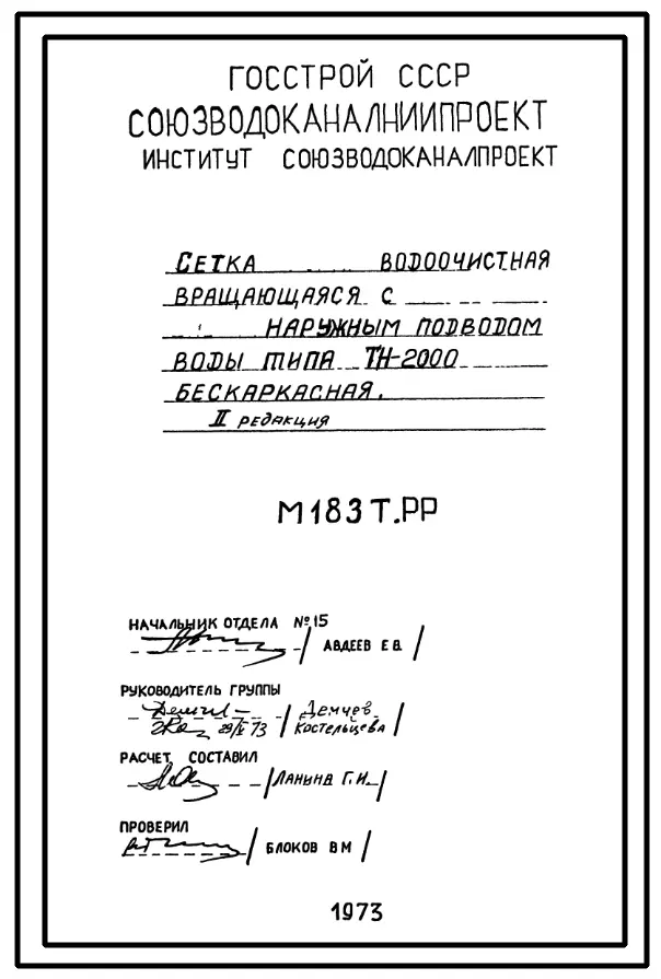 Серия М183 Сетка водоочистительная вращающаяся с наружным приводом воды типа ТН-2000 бескаркасная