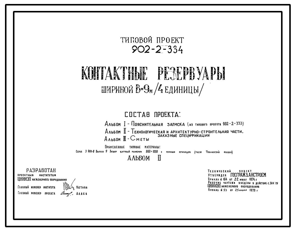 Типовой проект 902-2-334 Контактные резервуары шириной В=9 м (4 единицы)
