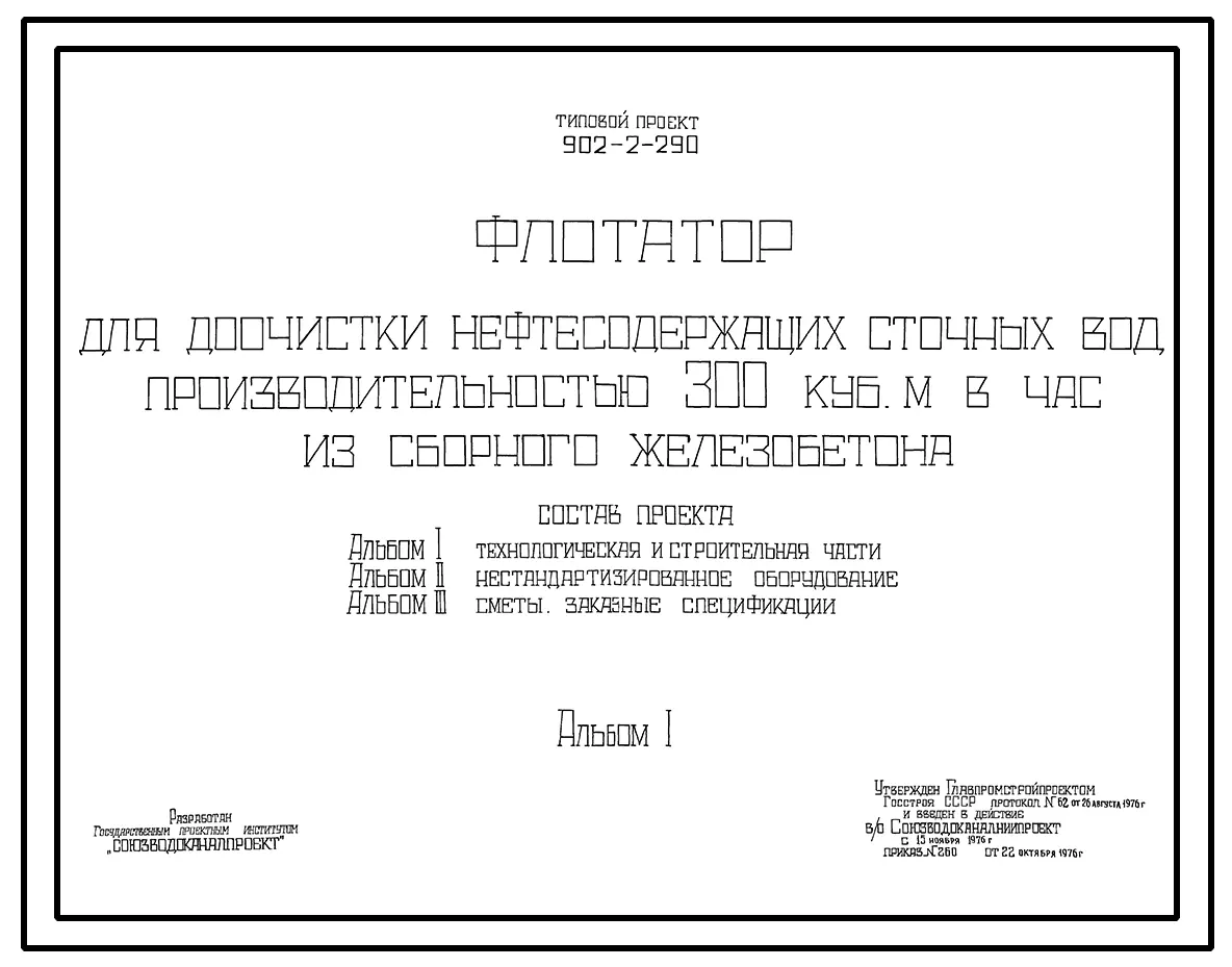 Типовой проект 902-2-290 Флотатор для доочистки нефтесодержащих сточных вод производительностью 300 куб. м в час из сборного железобетона