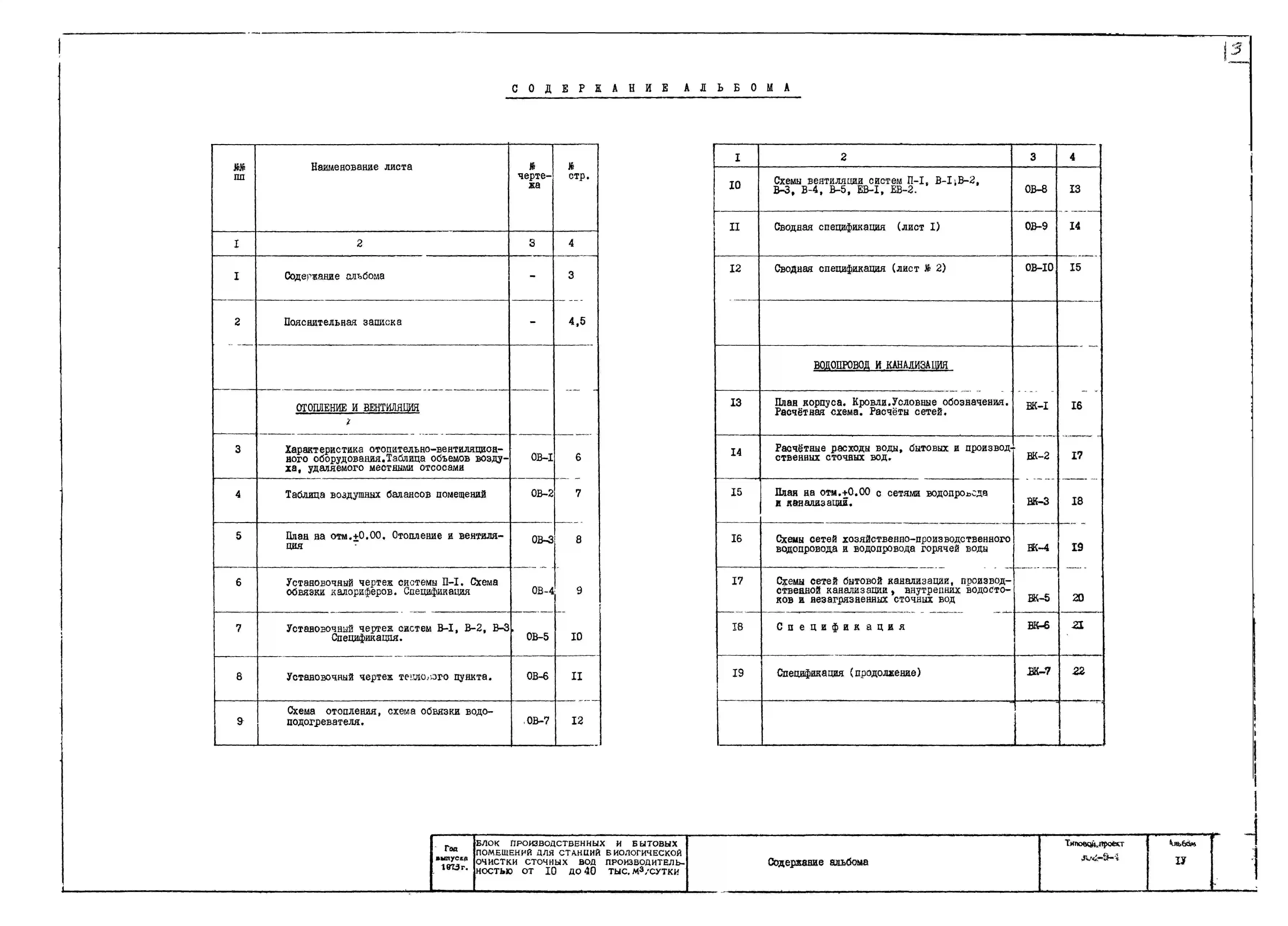 Типовой проект 902-9-4 Блок производственных и бытовых помещений для станций биологической очистки сточных вод производительностью от 10 до 40 тыс.м.куб/сутки