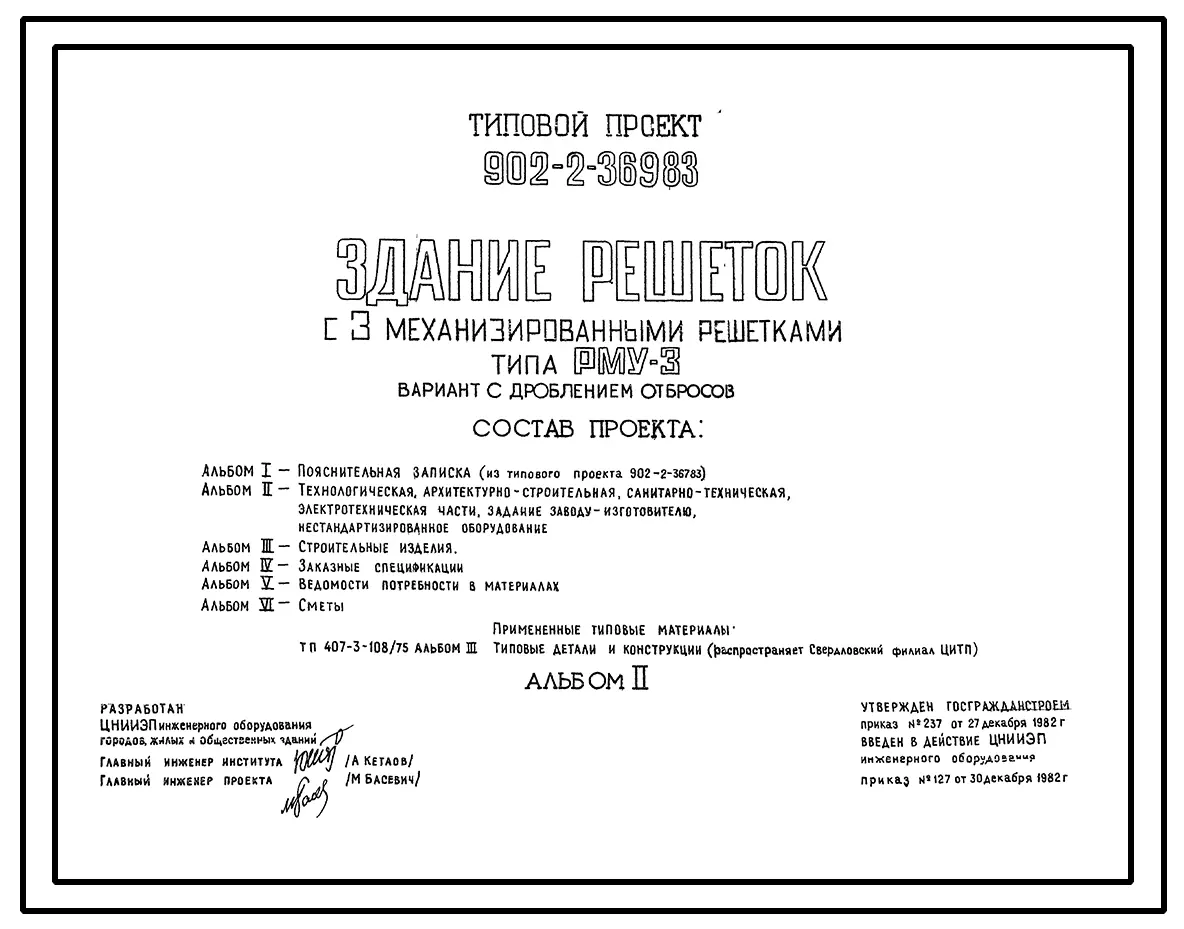 Типовой проект 902-2-369.83 Здание решеток с 3 механизированными решетками РМУ-3 вариант с дроблением отбросов