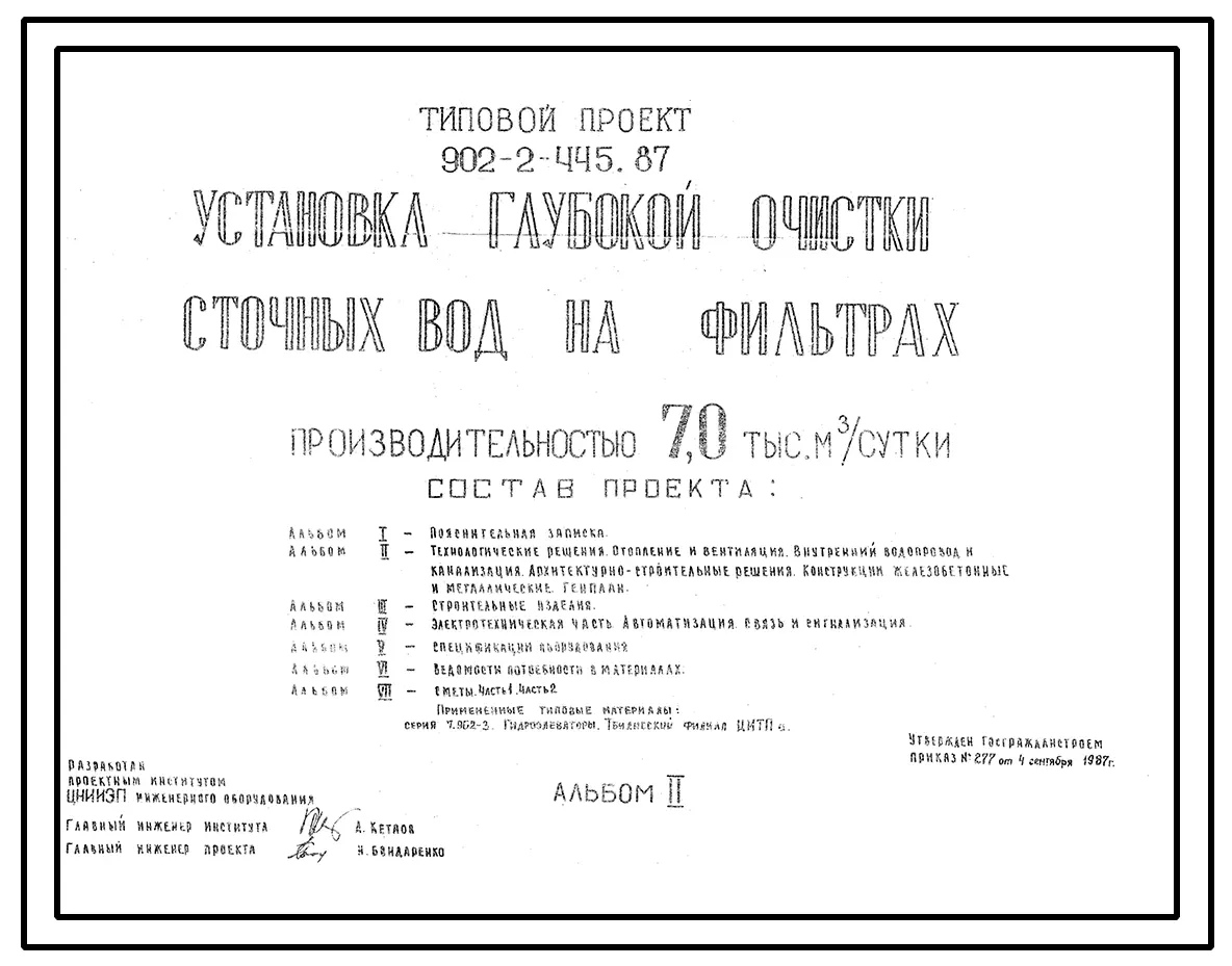 Типовой проект 902-2-445.87 Установка глубокой очистки сточных вод на фильтрах производительностью 7,0 тыс. м3/сутки