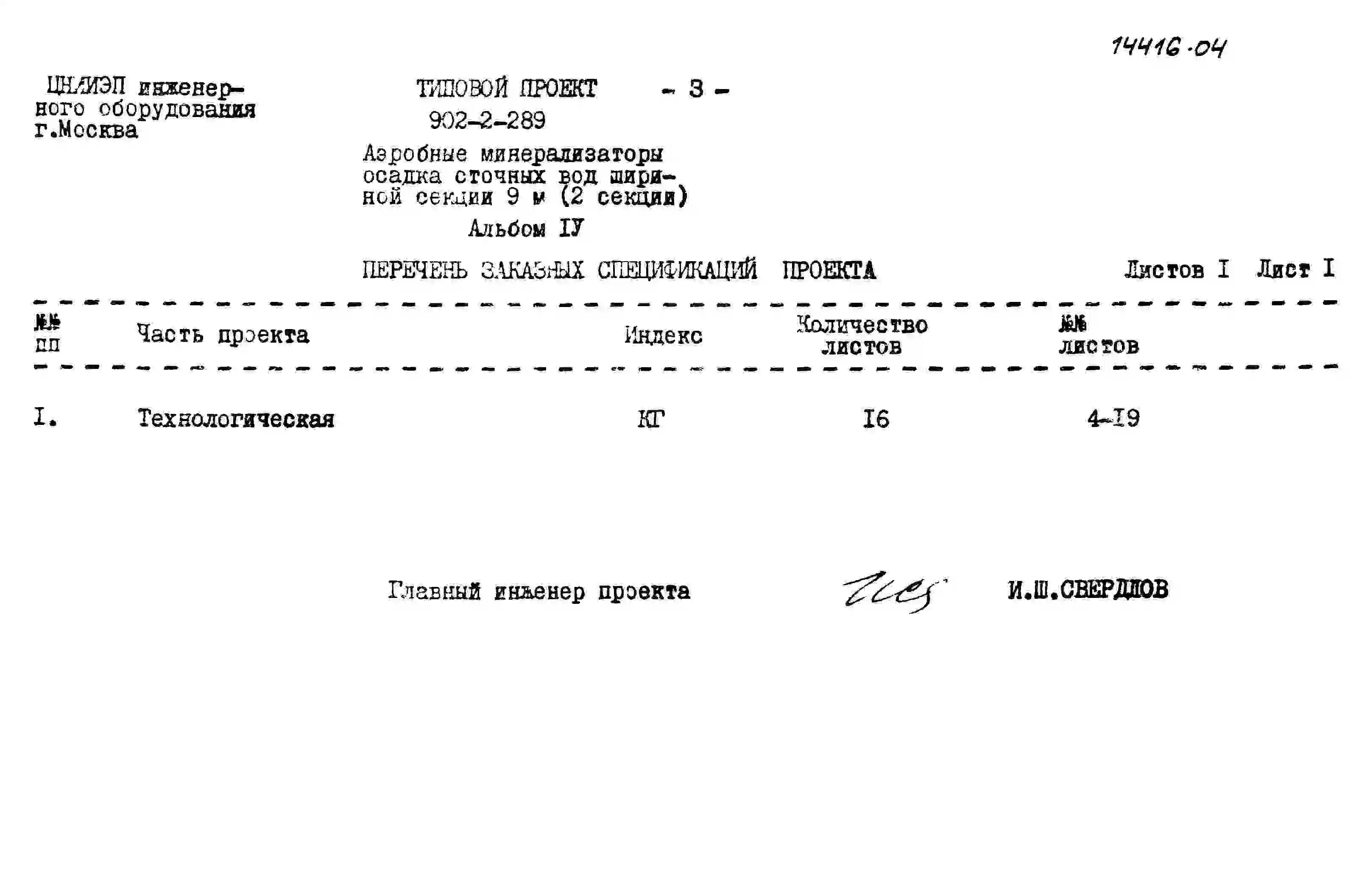Типовой проект 902-2-289 Аэробные минерализаторы осадка сточных вод шириной секции 9 м (2 секции)