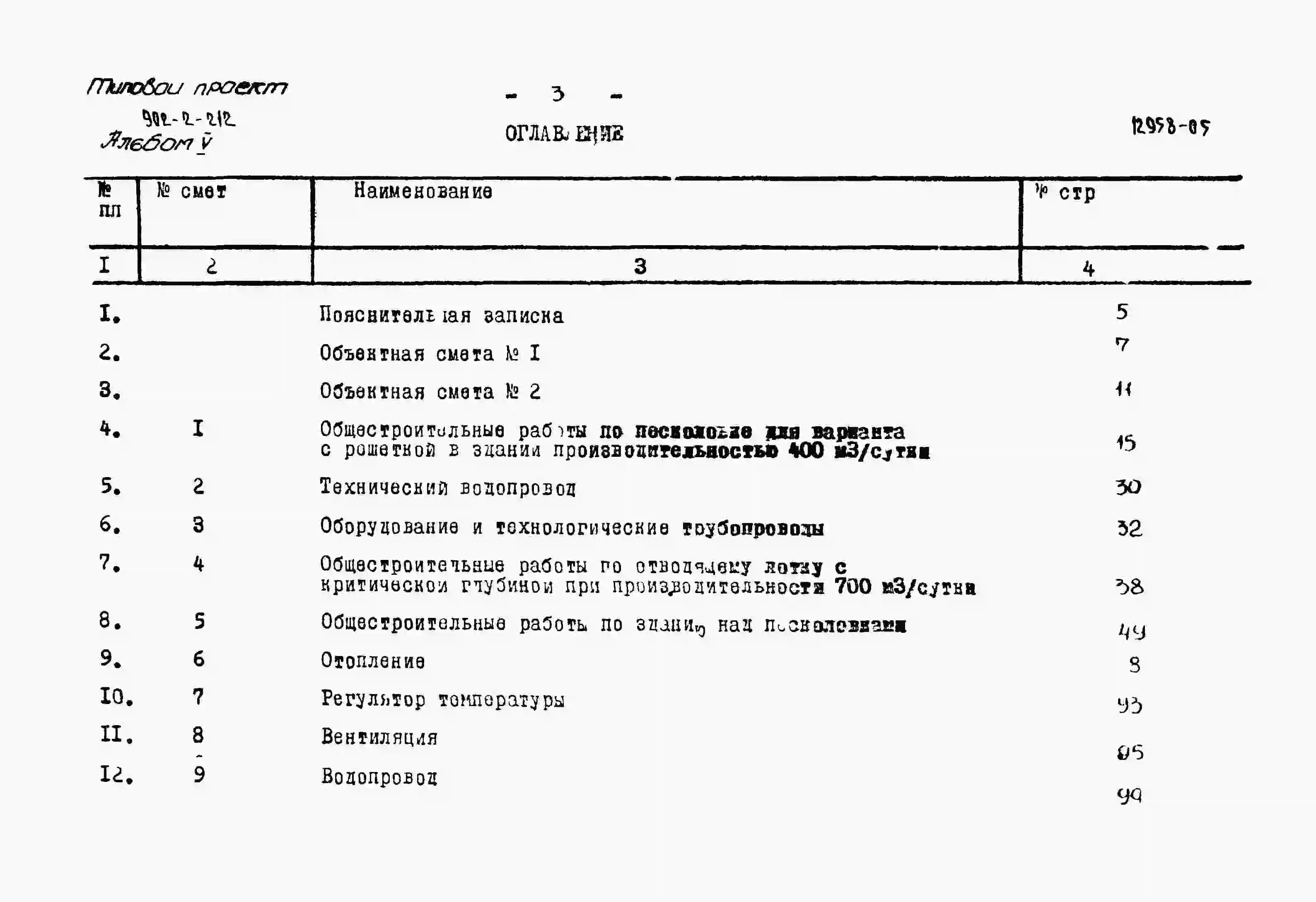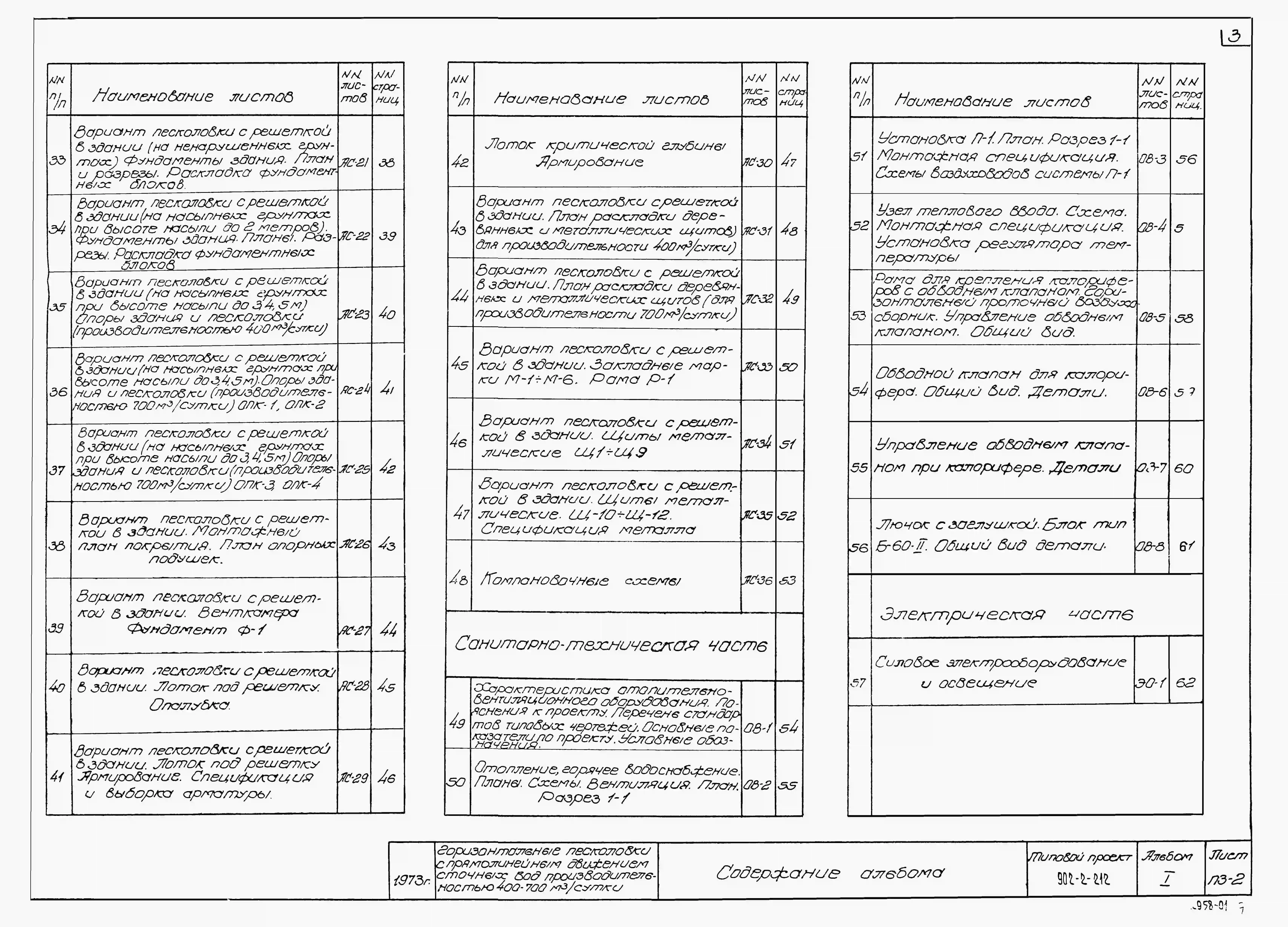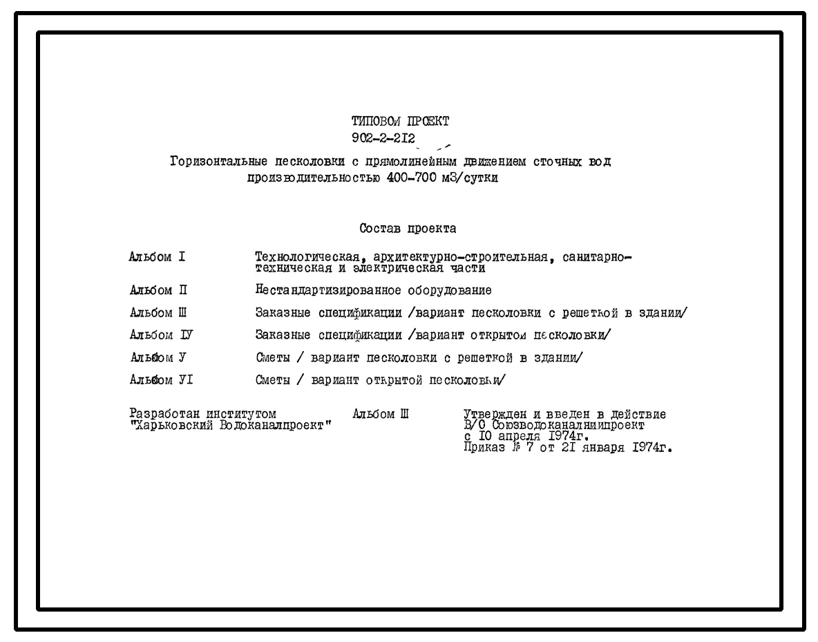 Типовой проект 902-2-212 Горизонтальные песколовки с прямолинейным движением сточных вод производительностью 400 - 700 куб. м/сутки (10 - 17 л/сек)