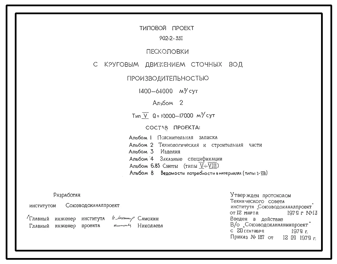 Типовой проект 902-2-331 Песколовки с круговым движением сточных вод производительностью 1400 - 64000 куб. м/сутки