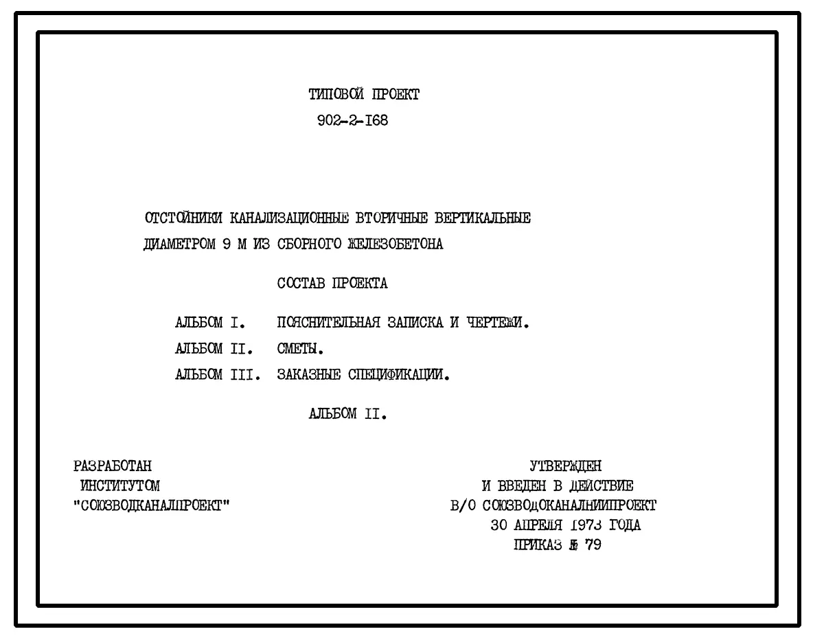 Типовой проект 902-2-168 Отстойники канализационные вторичные вертикальные диаметром 9 м из сборного железобетона
