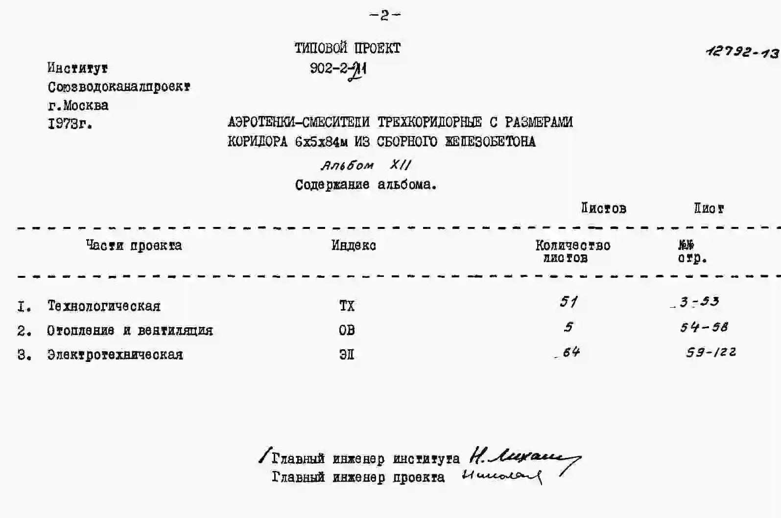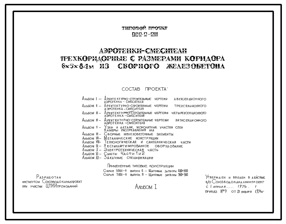 Типовой проект 902-2-211 Аэротенки-смесители трехкоридорные с размерами коридора 6 х 5 х 84 м из сборного железобетона