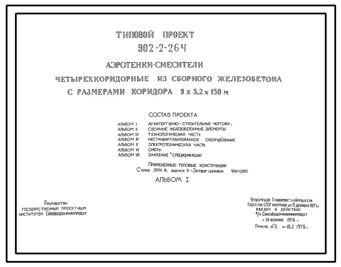 Типовой проект 902-2-264 Аэротенки-смесители четырехкоридорные с размерами коридора 9 х 5,2 х 150 м из сборного железобетона