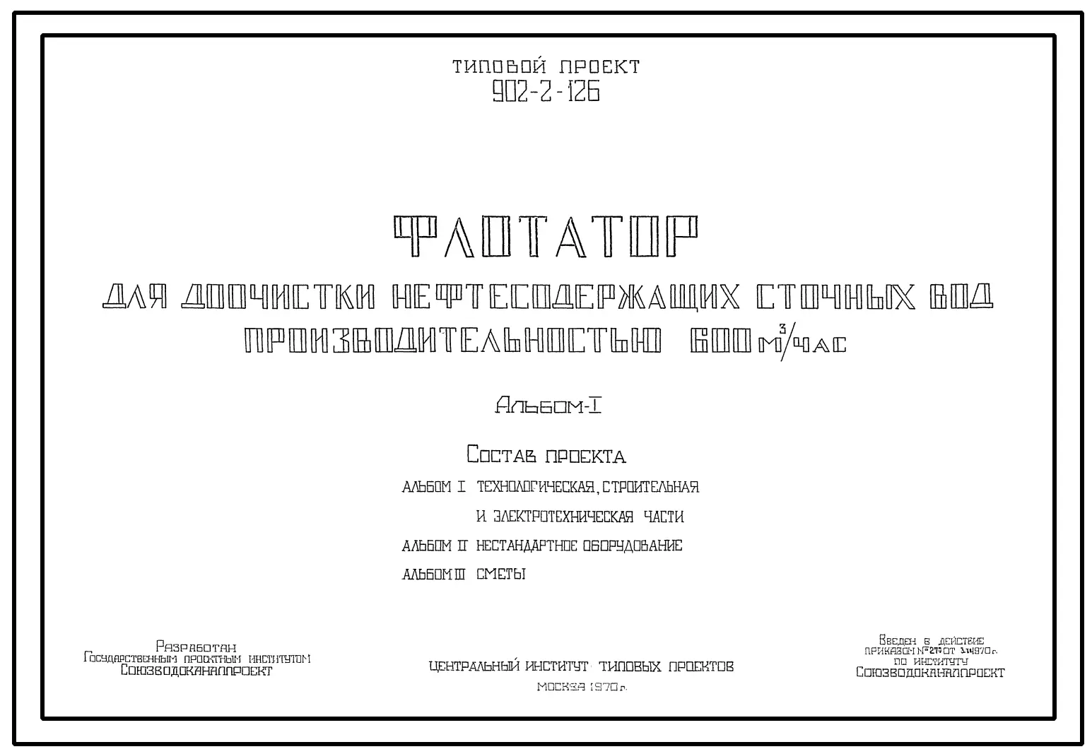 Типовой проект 902-2-126 Флотатор для доочистки нефтесодержащих сточных вод производительностью 600 куб. м/час
