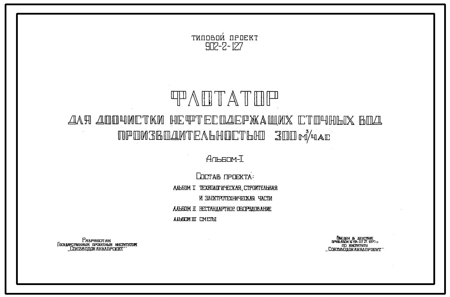 Типовой проект 902-2-127 Флотатор для доочистки нефтесодержащих сточных вод производительностью 300 куб. м/час