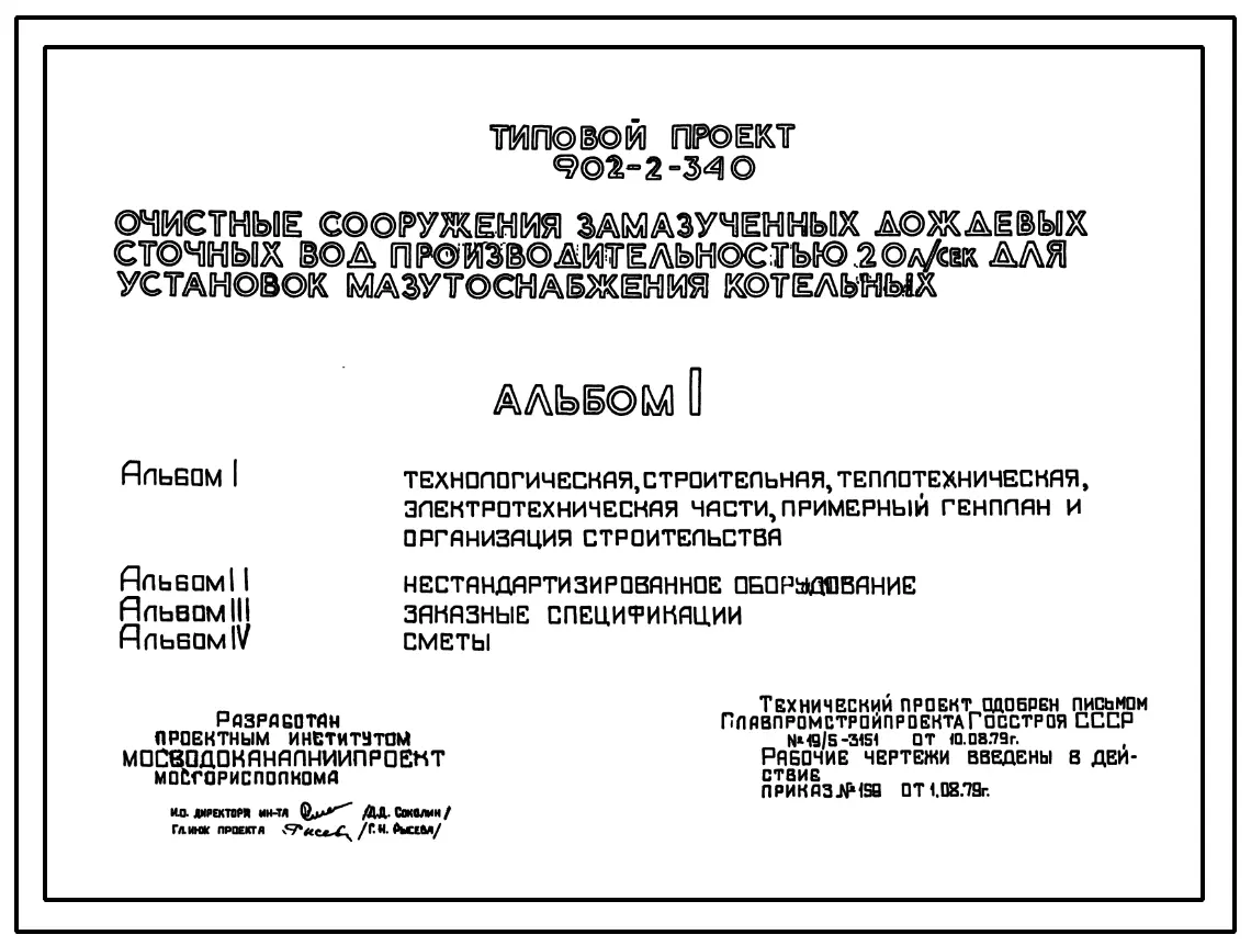 Типовой проект 902-2-340 Очистные сооружения замазученных дождевых сточных вод производительностью 20 л/сек для установок мазутоснабжения котельных