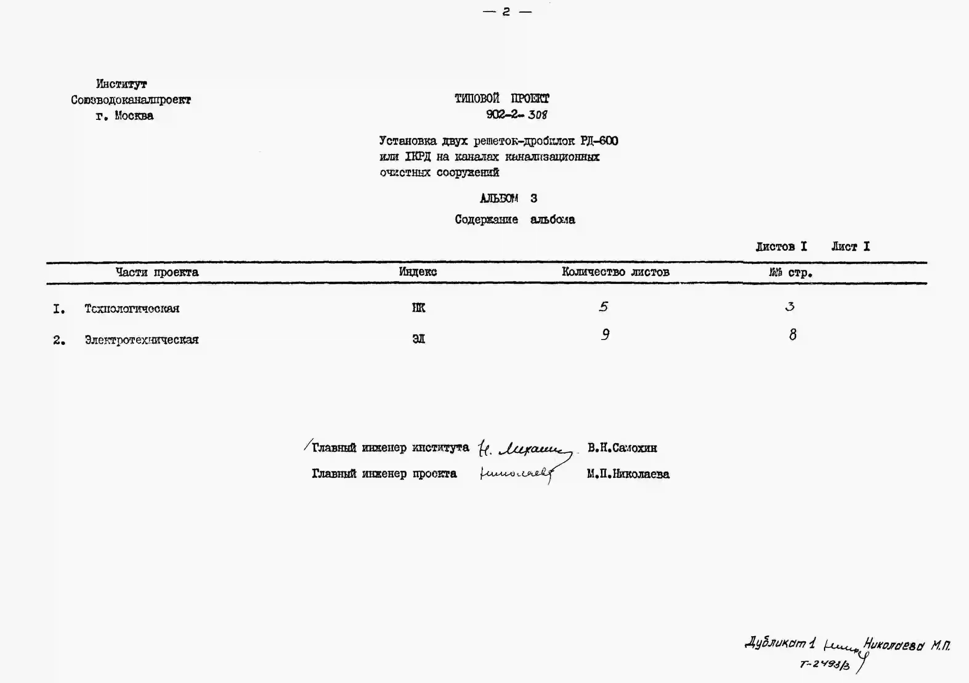 Типовой проект 902-2-308 Установка двух решеток-дробилок РД-600 или 1КРД на каналах канализационных очистных сооружений