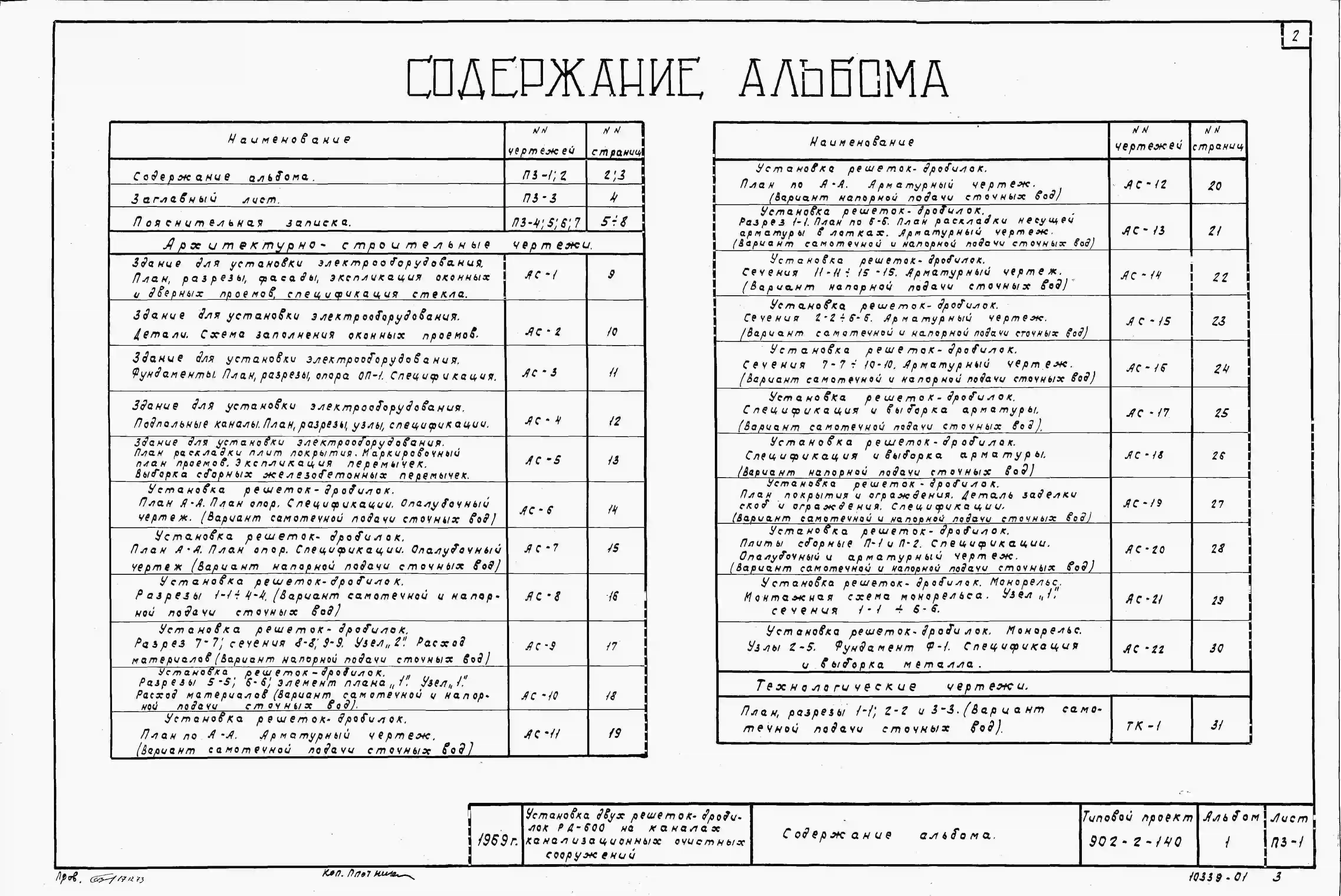 Типовой проект 902-2-140 Установка двух решеток-дробилок РД-600 на каналах канализационных очистных сооружений