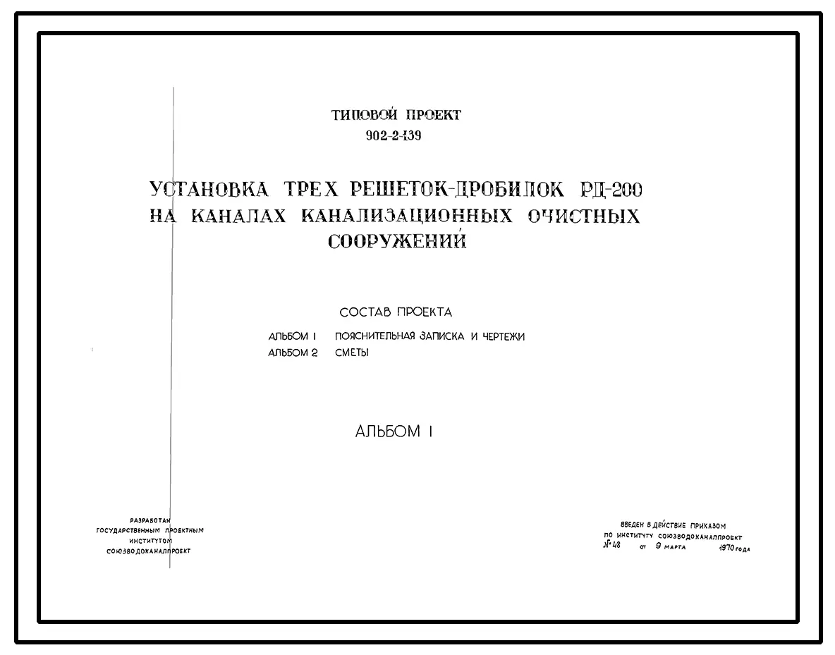 Типовой проект 902-2-139 Установка трех решеток-дробилок РД-200 на каналах канализационных очистных сооружений