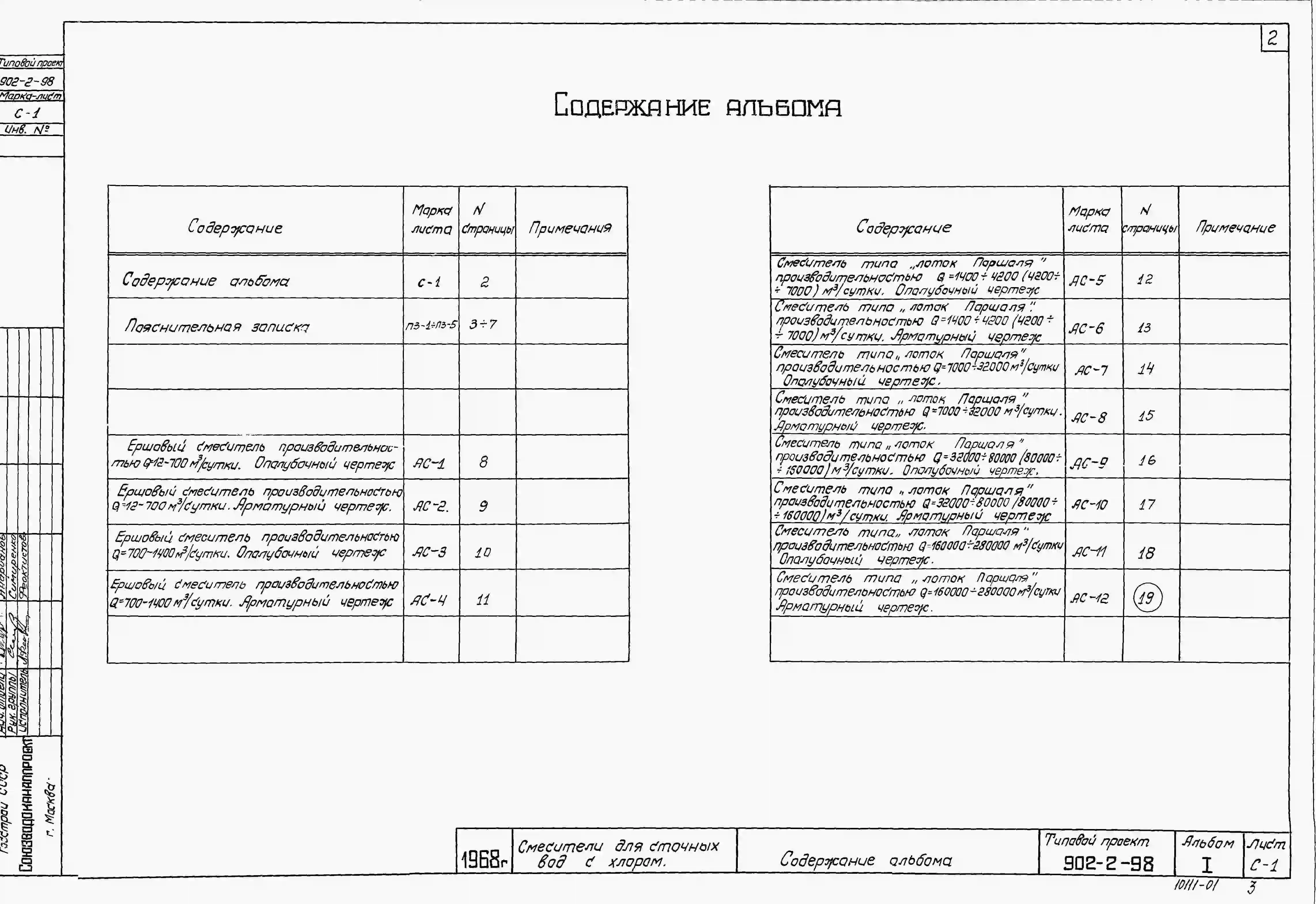 Типовой проект 902-2-98 Смесители для сточных вод с хлором