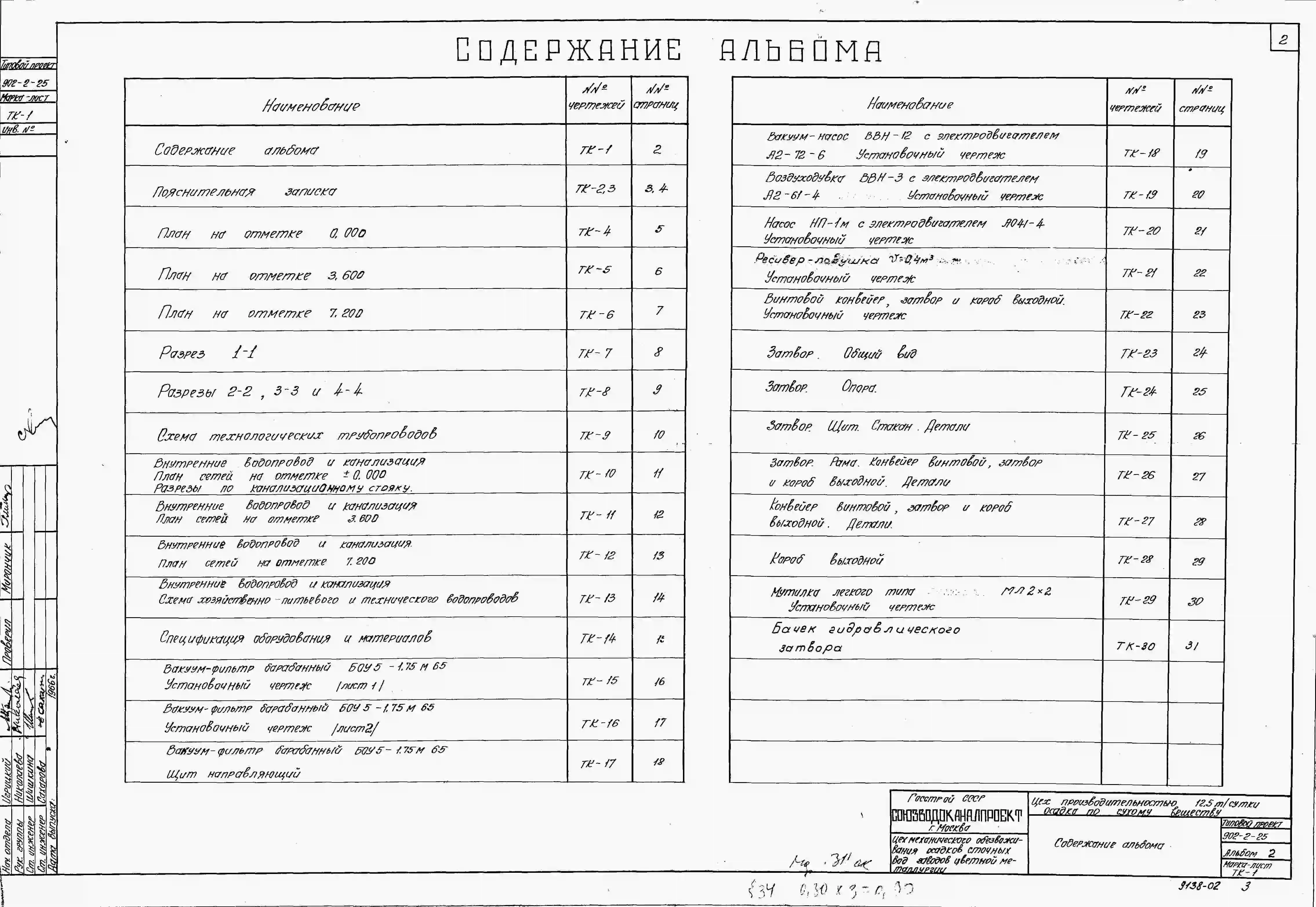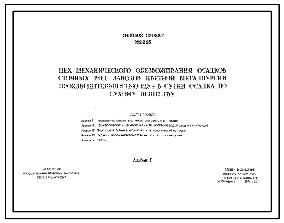 Типовой проект 902-2-25 Цех механического обезвоживания осадков сточных вод заводов цветной металлургии производительностью 12,5 т./сутки осадка по сухому веществу
